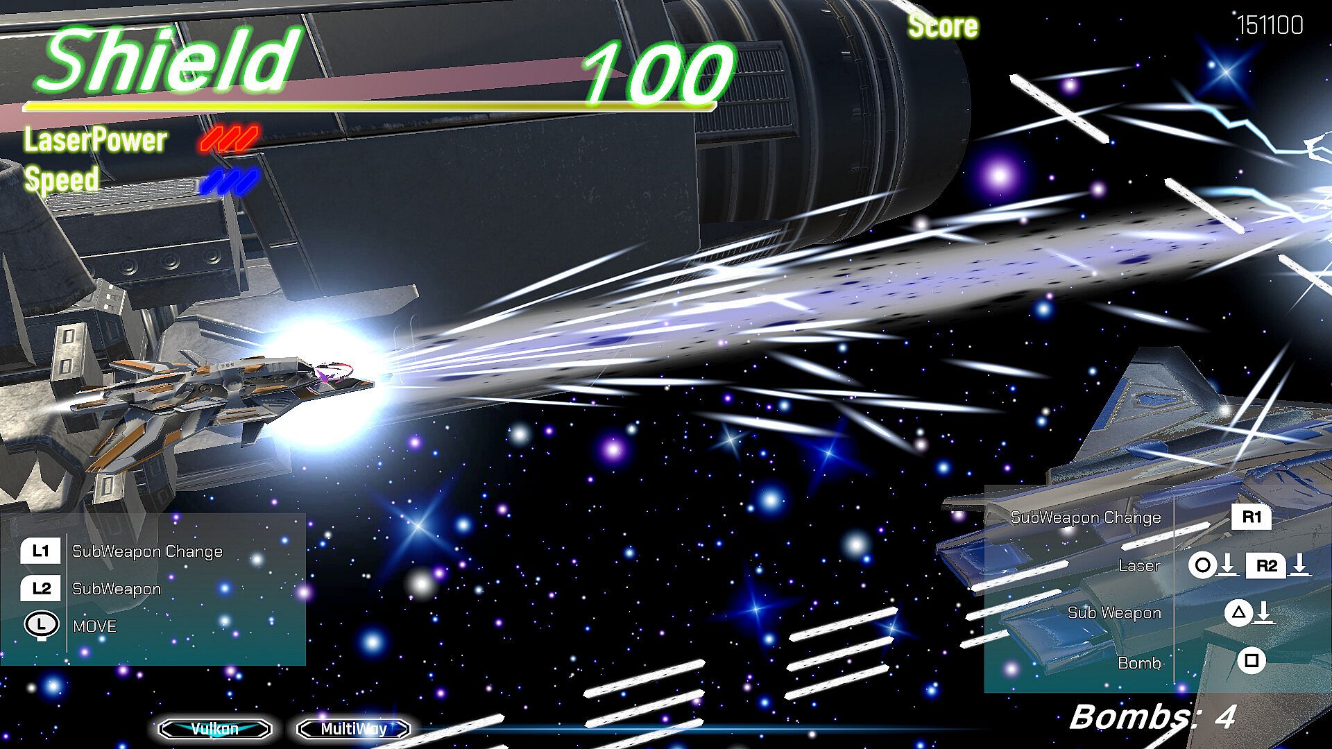 Use auto-aiming lasers, switchable sub-weapons, and bombs for emergency escapes. Master rolls and sharp turns to survive waves of enemy fighters.