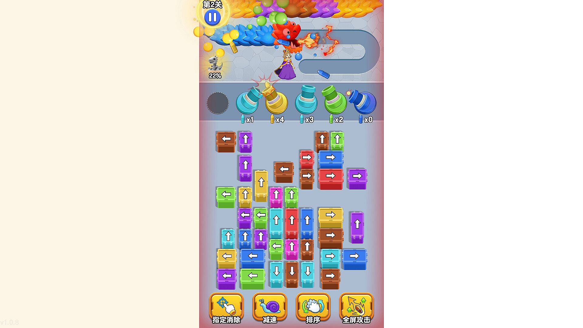 Item-Assisted Clearance: When the battle becomes tense, you can use items like "Targeted Match," "Slowdown," "Sort," and "Full-Screen Attack" to turn the tide. For example, "Full-Screen Attack" clears all blocks at once, quickly refilling your ammo for a decisive strike against the dragon.