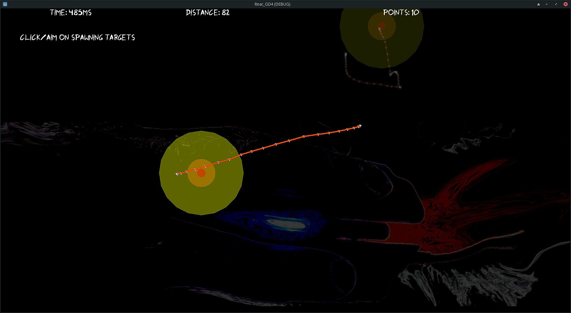 • A target spawns on screen and shall be hit by the mouse pointer. The target has 3 different areas, depending on the area which got hit, more points can be achieved. Time measurements starts on spawn of the target and ends with a mouse click. The diagram shows three different y-count/x-time distributions each referring to the achieved points.