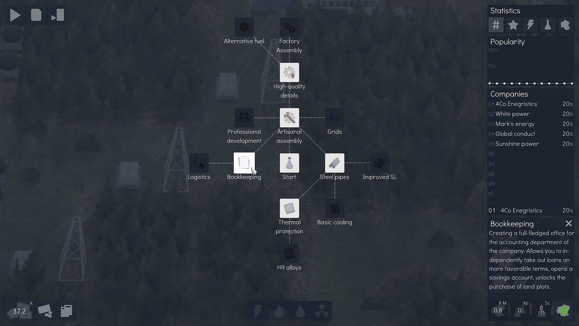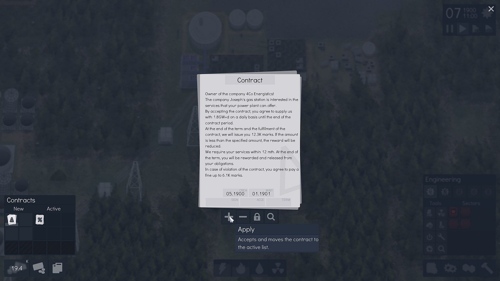 Other power companies will play against you. You have to turn your company into the very first in popularity in 100 gaming years.