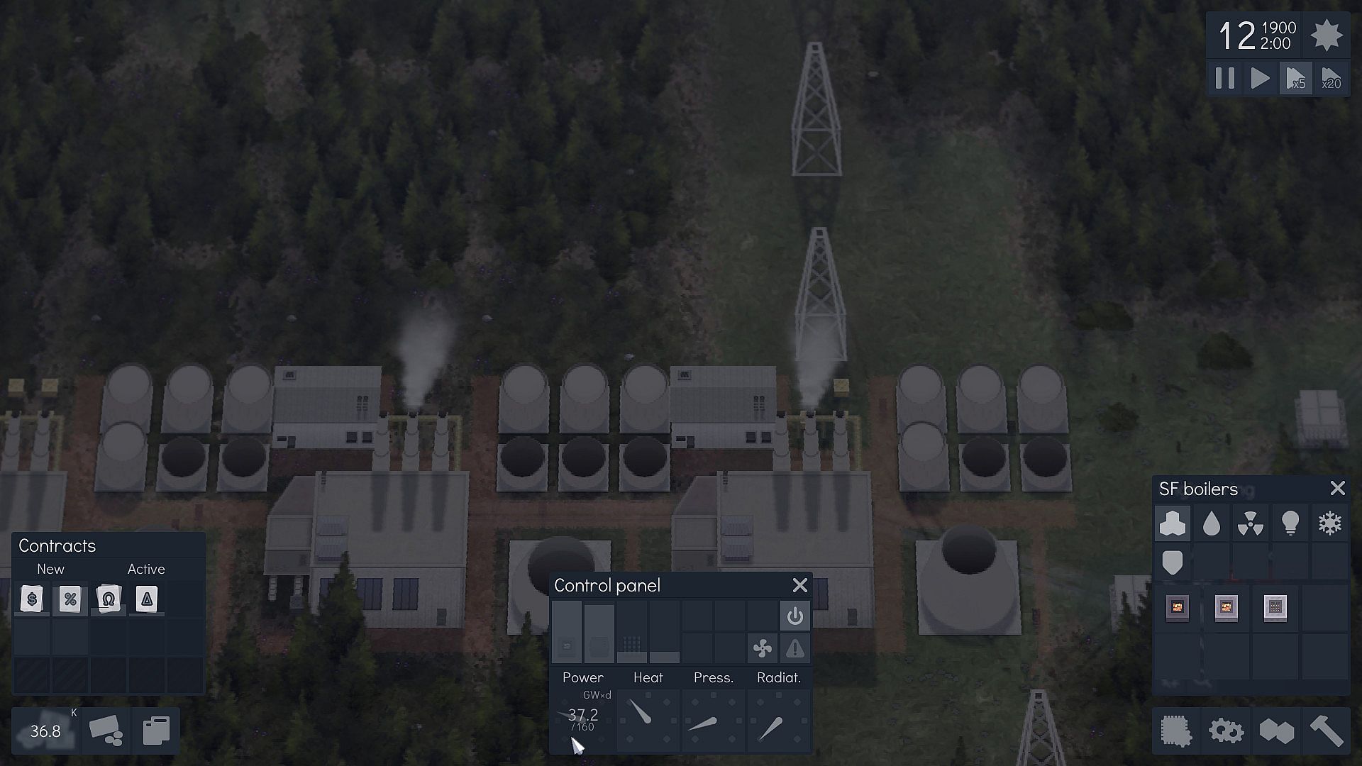 Use the control panel to change the output of boilers, heat exchangers, neutron reflectors and water supply.
