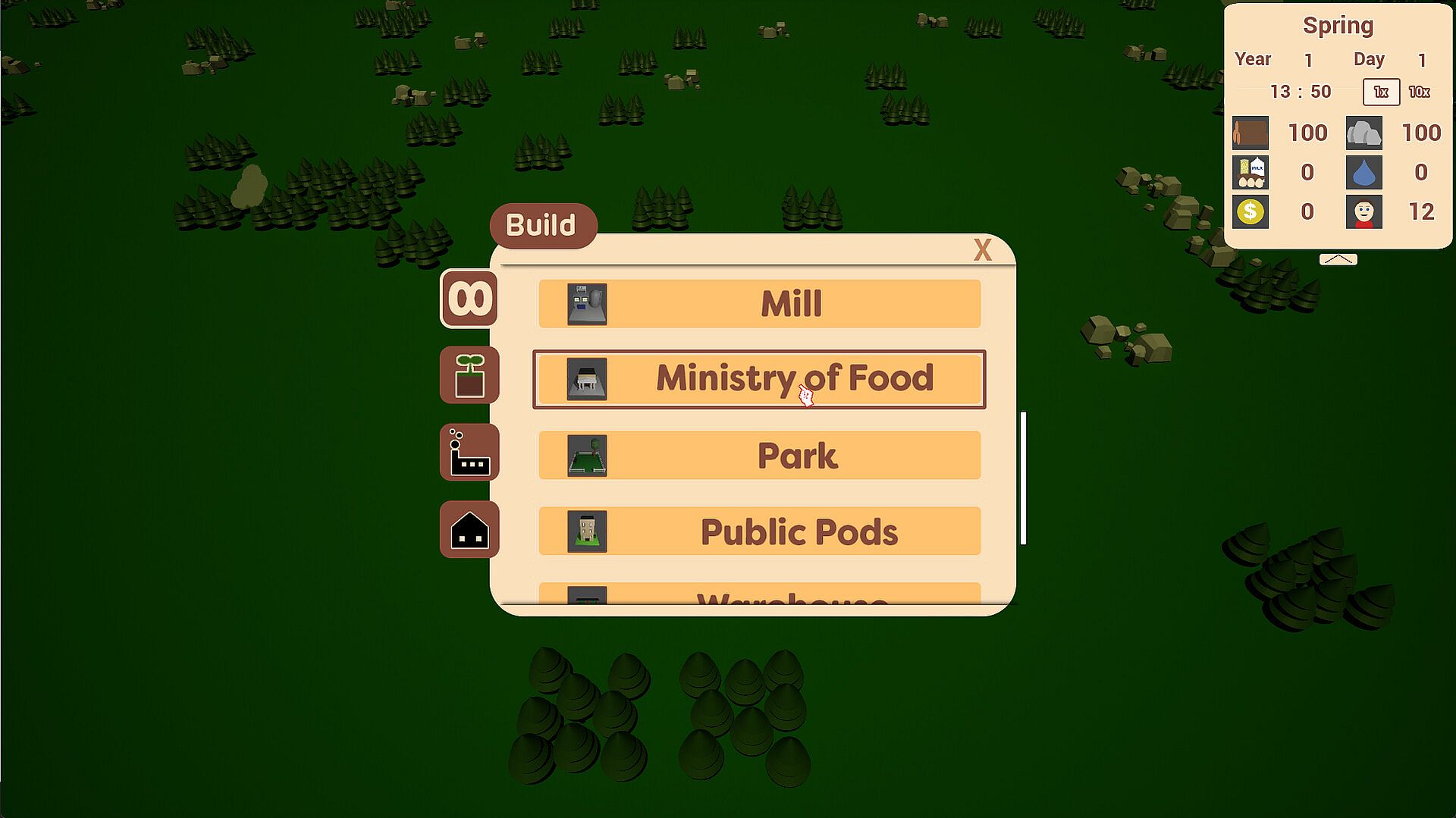 - Happiness - Keep your citizens happy through buildings like the park or the pub. Happy citizens will create new citizens. Unhappy citizens will try to flee.