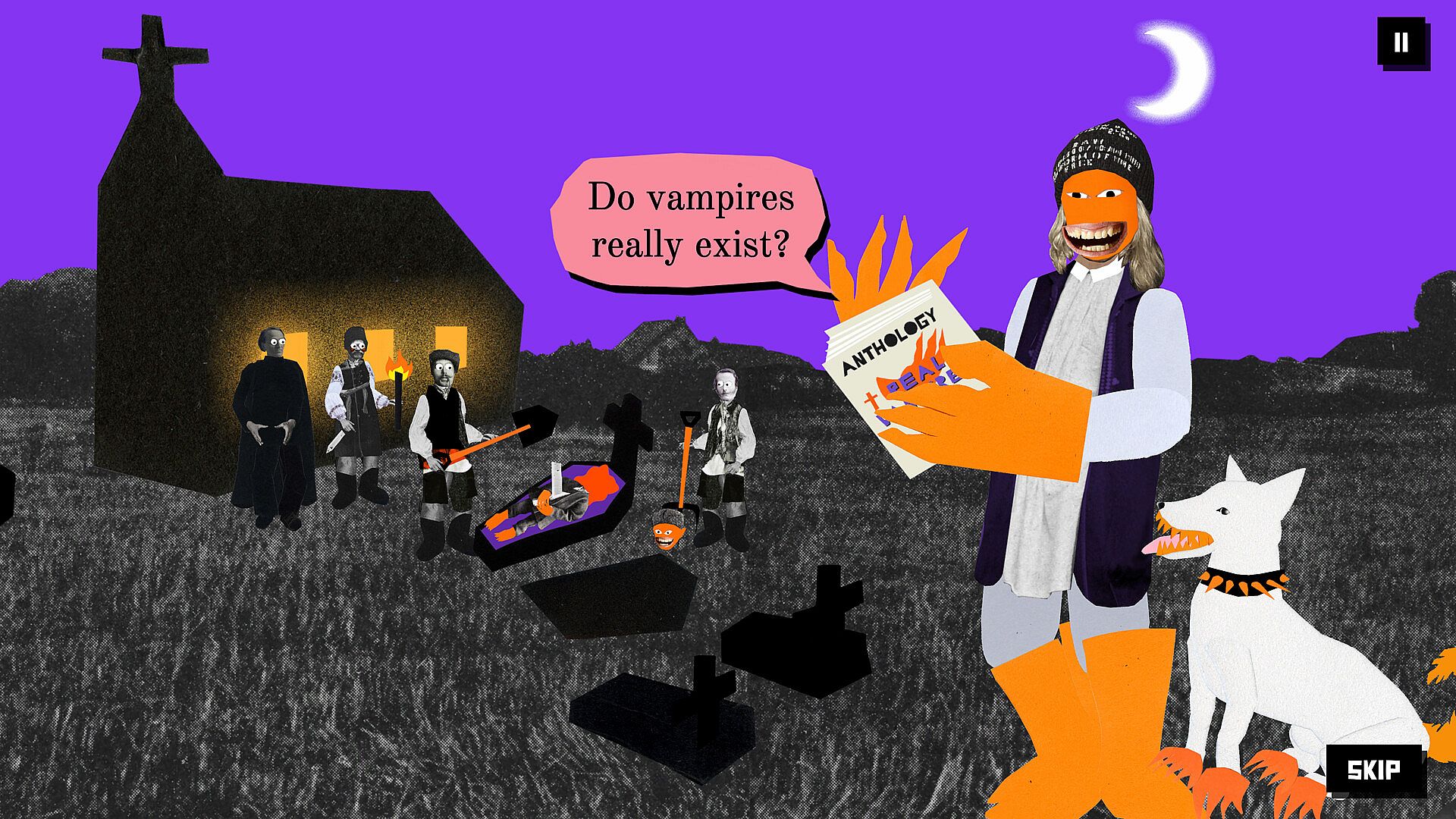Real Vampires is a narrative-driven adventure game that blends dark humor, eerie poetry, and authentic Slavic vampire folklore into a unique interactive experience. Developed by Those Eyes, the Copenhagen-based studio behind the award-winning Cosmic Top Secret, this game invites players to explore real stories of fear, death, and transformation—told through the eyes of both vampire and folk.