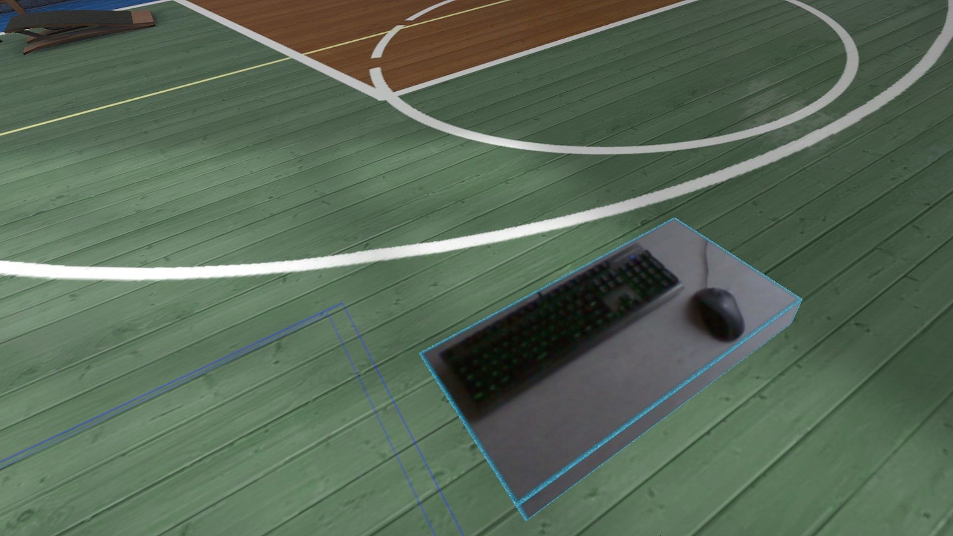 Apart from these 'camera boxes' the app also provides a mixed reality Cockpit for use with simracing and flight simulators, a Floor Viewer to quickly see the real floor around your feet and a Lap Viewer for use with seated experiences such as Big Screen. Lap Viewer can be used for quick glances at a normal (untracked) keyboard on your lap.