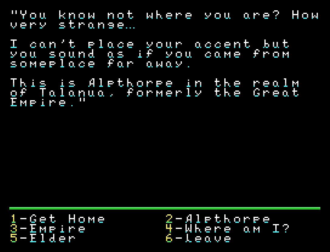 This is a retro computer role-playing game, written for the classic TI-99/4a home computer, released in 1981. It runs in full emulation on modern Windows systems as well as the original hardware.