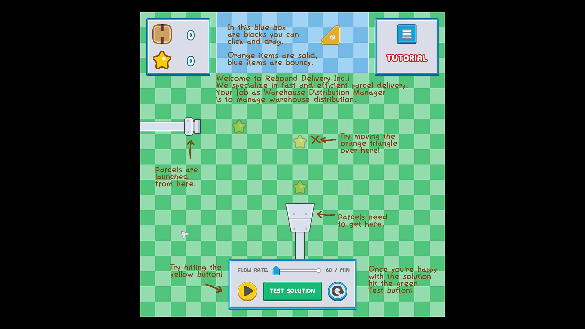 Rebound Express is a 2D physics puzzle game where parcels are launched from fixed emitters and must reach specific receivers scattered across the board. To guide them, you’ll place and rotate a variety of modular platforms across a grid-based warehouse environment. Some platforms are simple walls, others are perfectly elastic bouncers, and some are high-powered boosters that add extra speed to the mix.