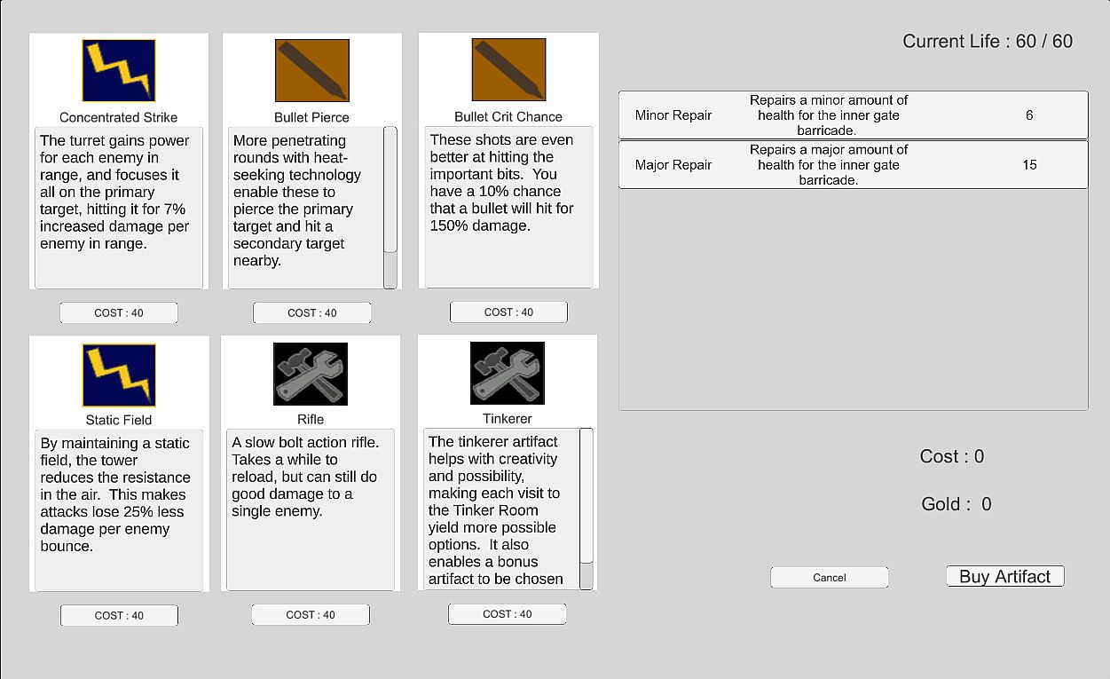 Utilize all of the typical roguelike elements: Navigate randomized levels, discover new tower upgrades, unlock unique artifacts, withstand enemy waves, and prepare for boss encounters - You must make do with what you find along the way, or fall.