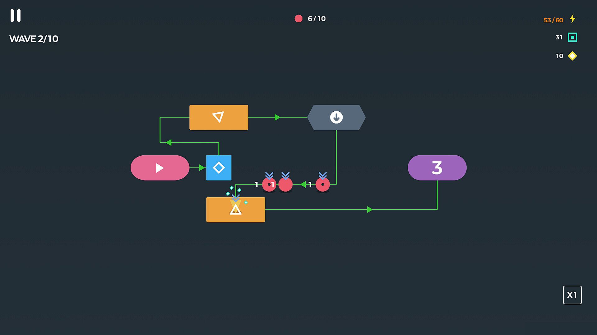 Harness the power of flowcharts to extract resources and defend your system against relentless waves of enemies.