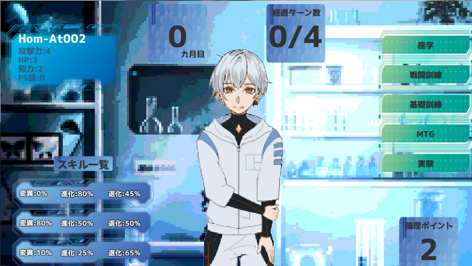 『Recursive Vessel』is a strategic homunculus breeding simulation game at the forefront of biology that will determine the fate of humanity. As a researcher assigned to a research institute with somewhat questionable ethics, you become the project leader responsible for developing the ultimate combat homunculi. The final objective of the project is to defeat three monsters using the developed homunculi. The research institute is extremely performance-driven, and you will be immediately fired if you fail to achieve your goals within the given time limit.