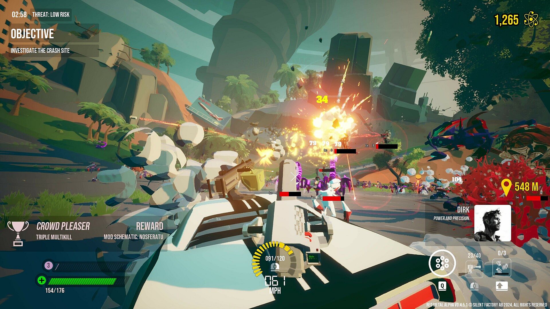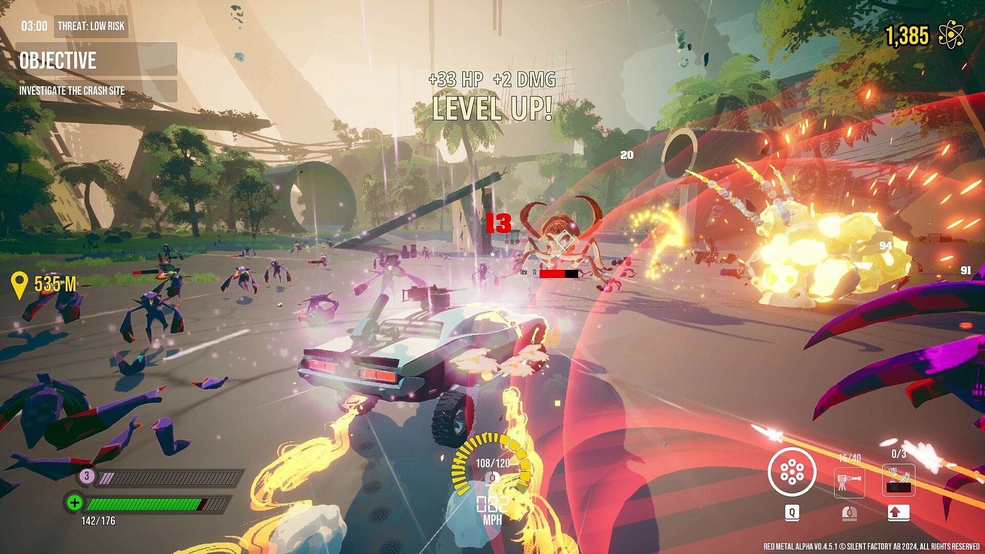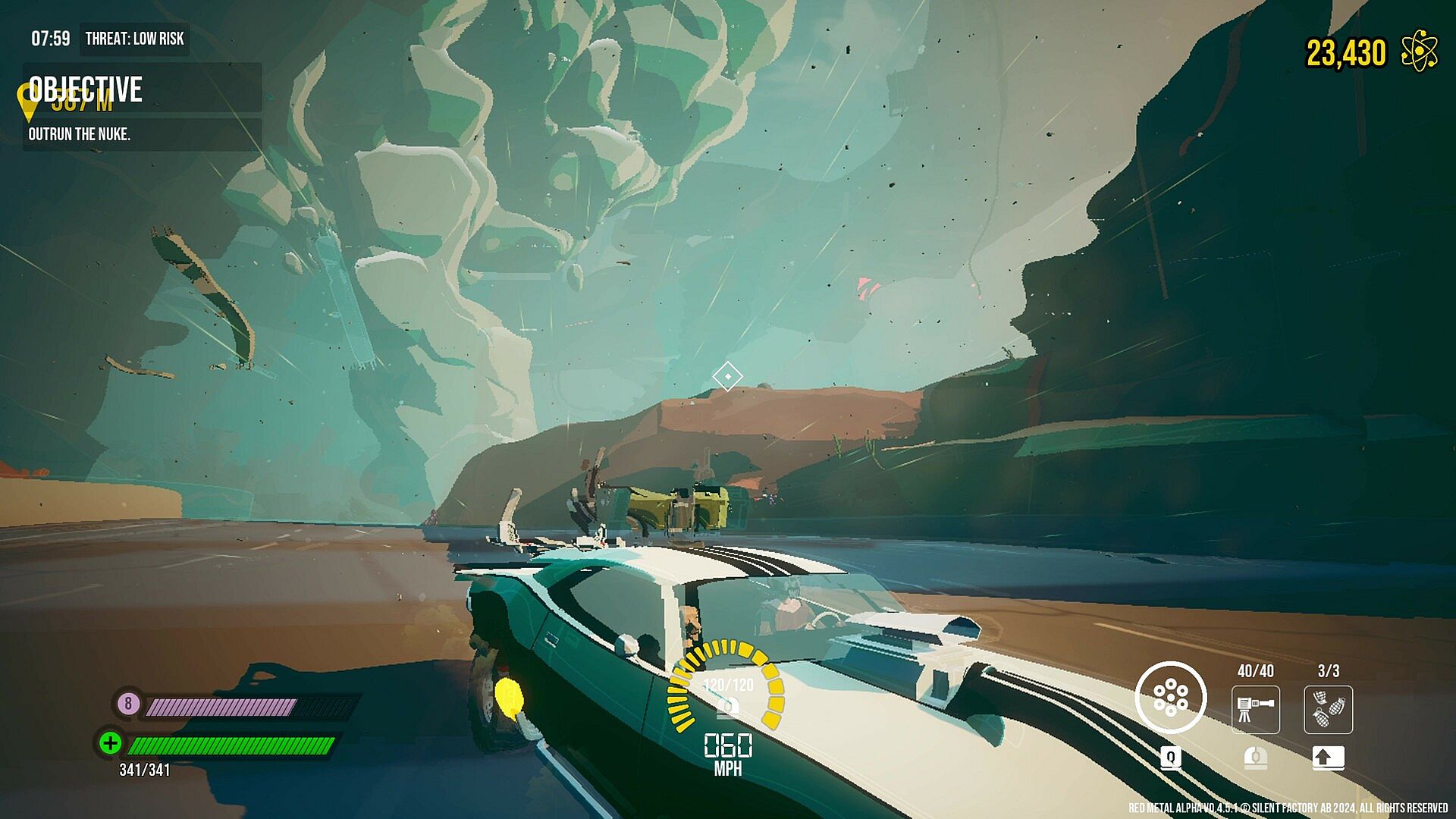 Red Metal is stylish, skill-based driving fused with systemic roguelite structure. Deep buildcraft. Physics with opinions. A reactive world that holds a grudge.