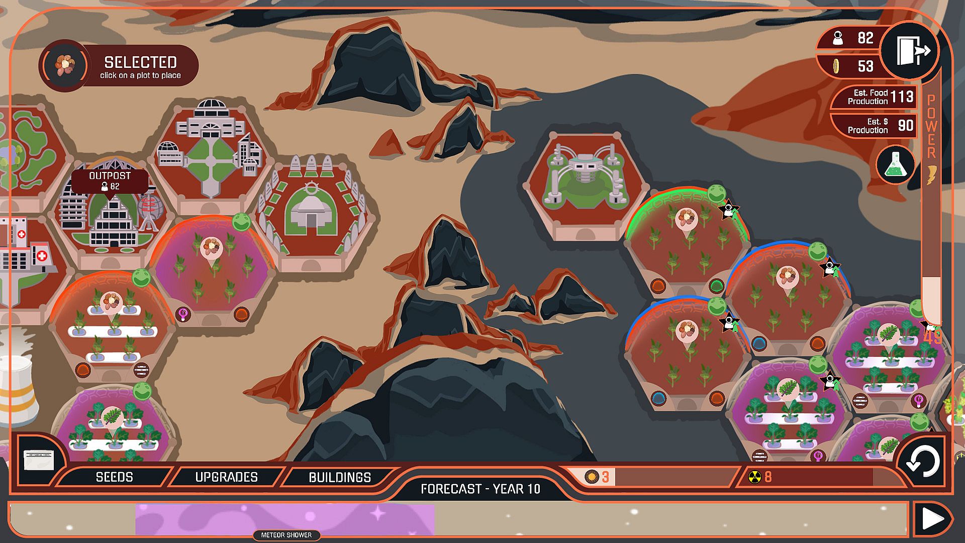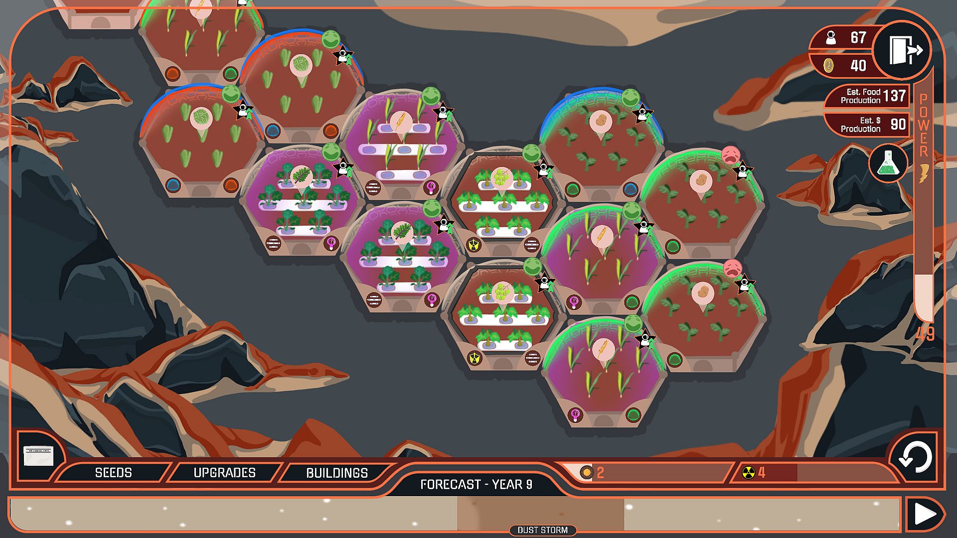 As the population of settlers grows, you’ll unlock new outposts in different regions of Mars to oversee, namely at Valles Marineris, Utopia Planitia, and Medusae Fossae. Each new region introduces new crops and technology to experiment with—and new challenges to overcome.