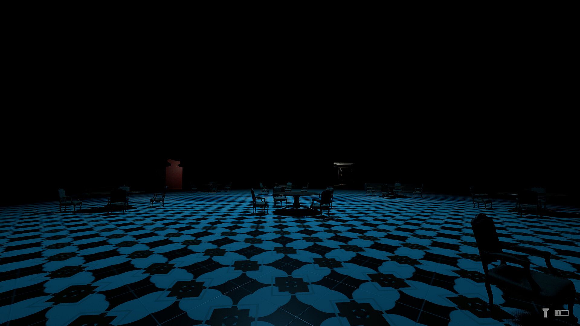 • Wander through Redrum Hotel's creepy hallways, dining hall, foyer and storage room.