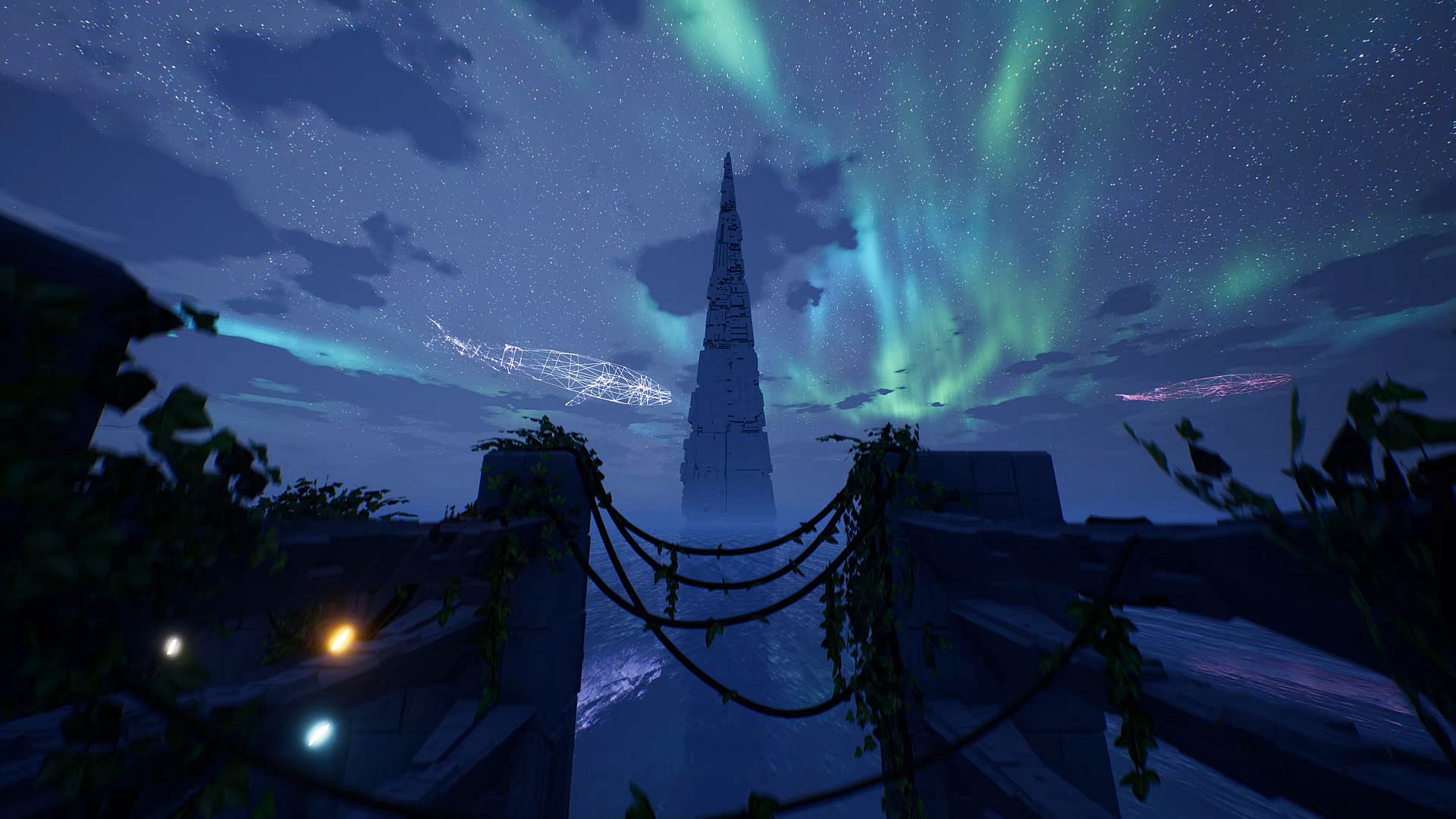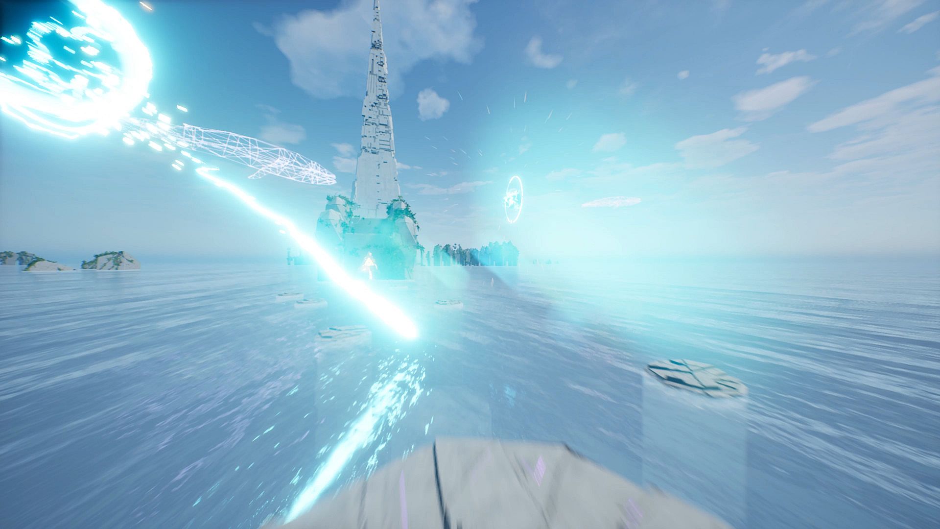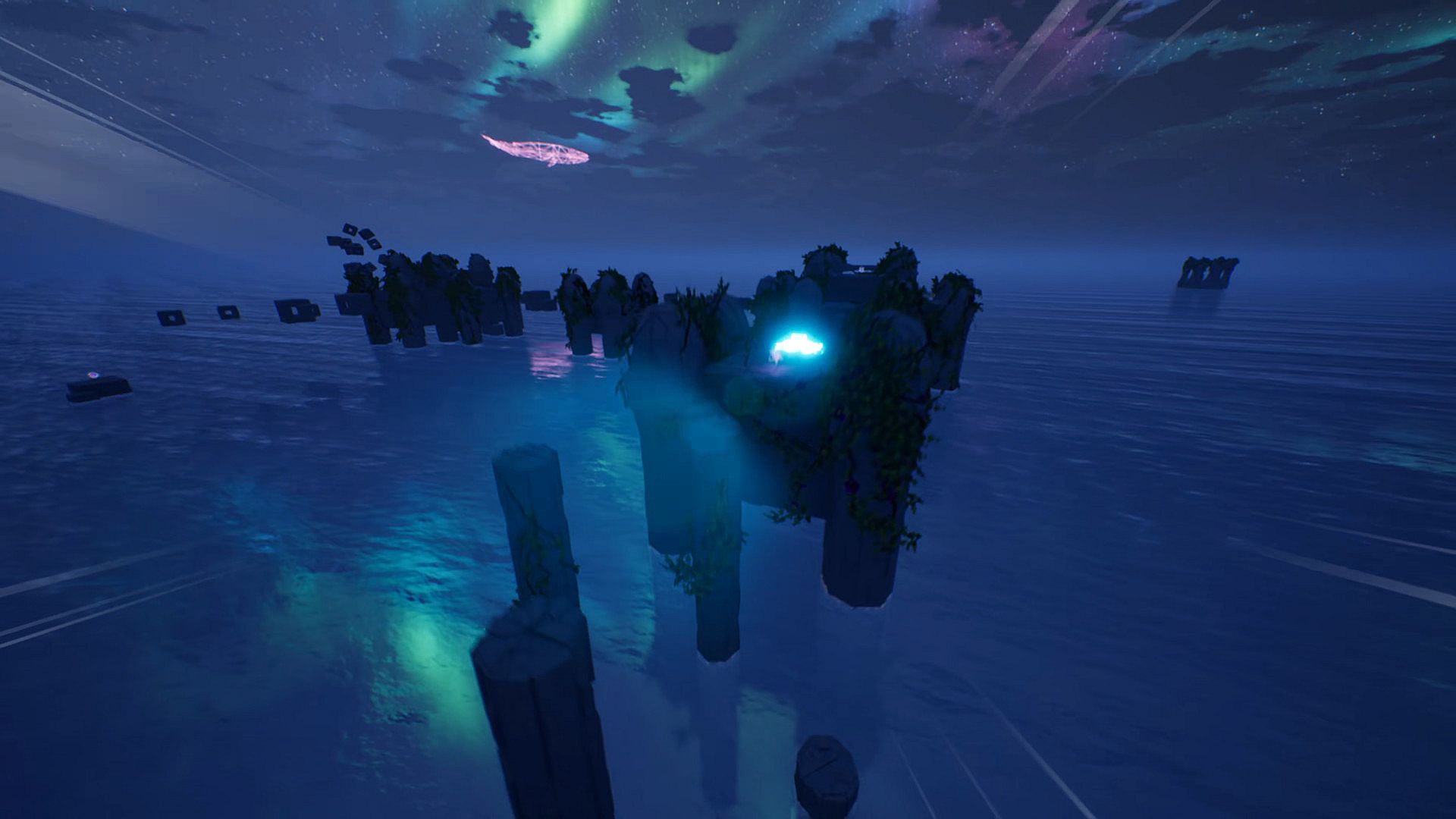 - A colorful world — a cycle of day and night, clouds floating across the sky, an endless ocean and vivid effects