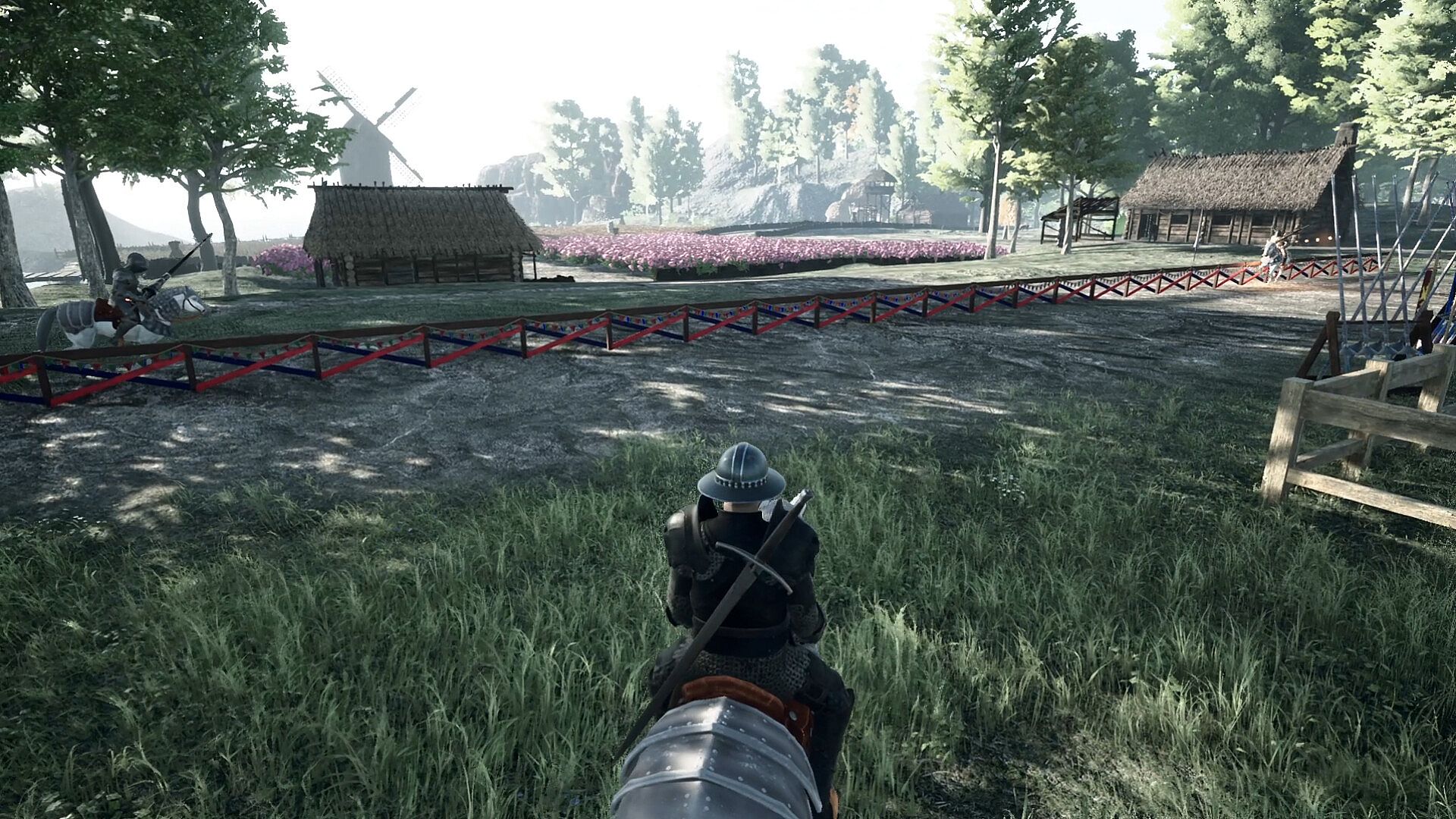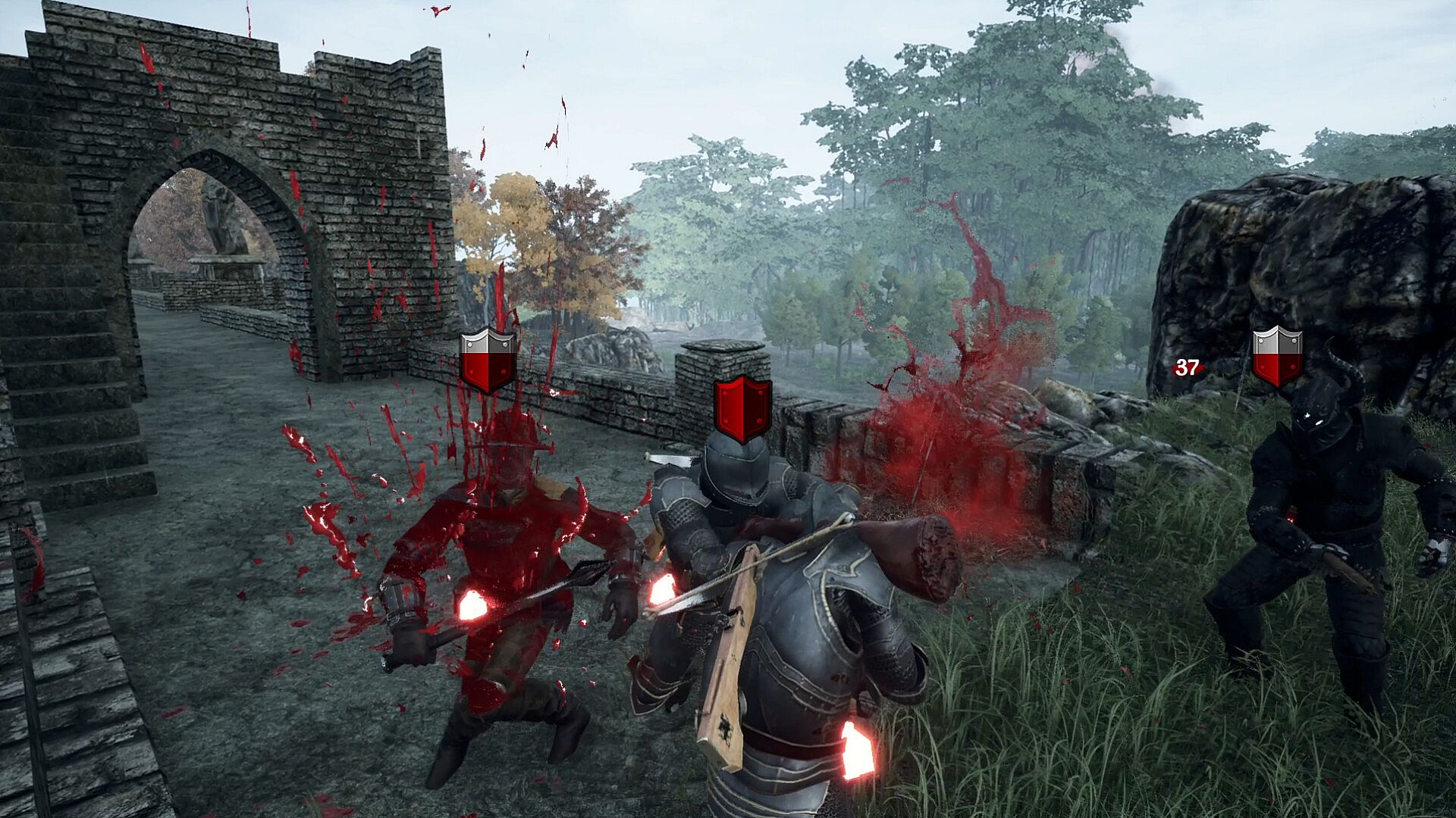 Melee combat is inspired by Chivalry and Mordhau, allowing you to perform unique attacks including standard swings, fast stabs, and powerful overhead strikes. Additionally, you can go on the defensive by using a block, parry, riposte, jump, or duck. Those who wish to take out their opponents from a distance can use bows, crossbows, and throwing weapons. Meanwhile magic grants you the versatility of performing a variety of spell types including standard elemental, area-of-effect, healing, summoning, and denial-of-area.