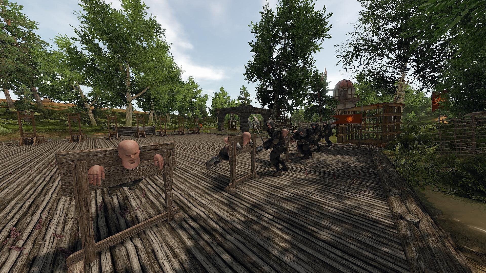 Punishment & Death Once the player has control of a captive, there are several options available for managing a prisoner. Options range from simply locking them in a cage or dungeon, public humiliation in the pillory, or simply executing them.