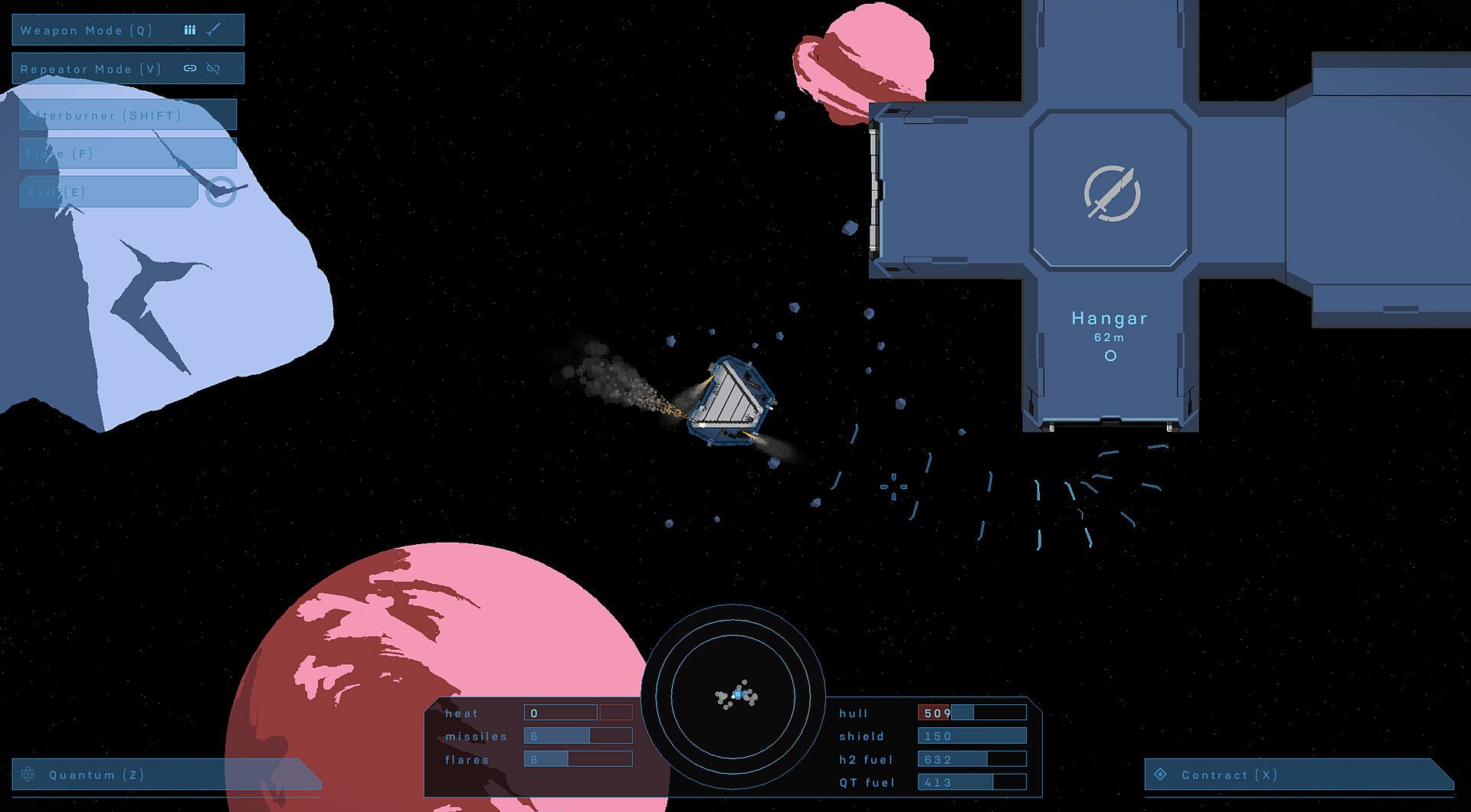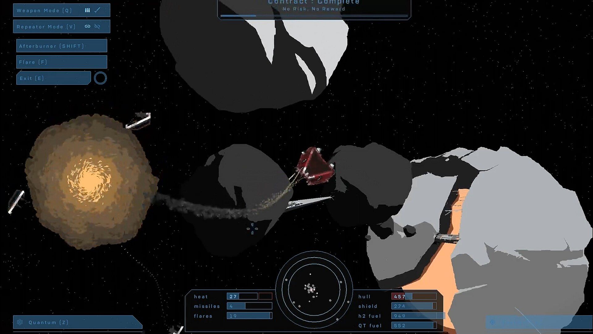 Complete missions. Sell cargo, and upgrade your ship. From basic Repeaters, to full on Gattling guns, and more...