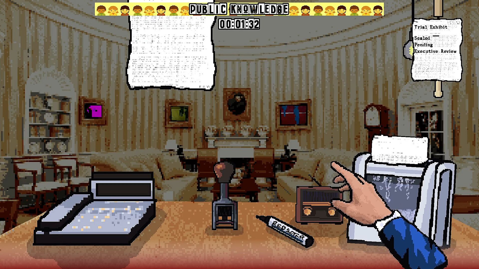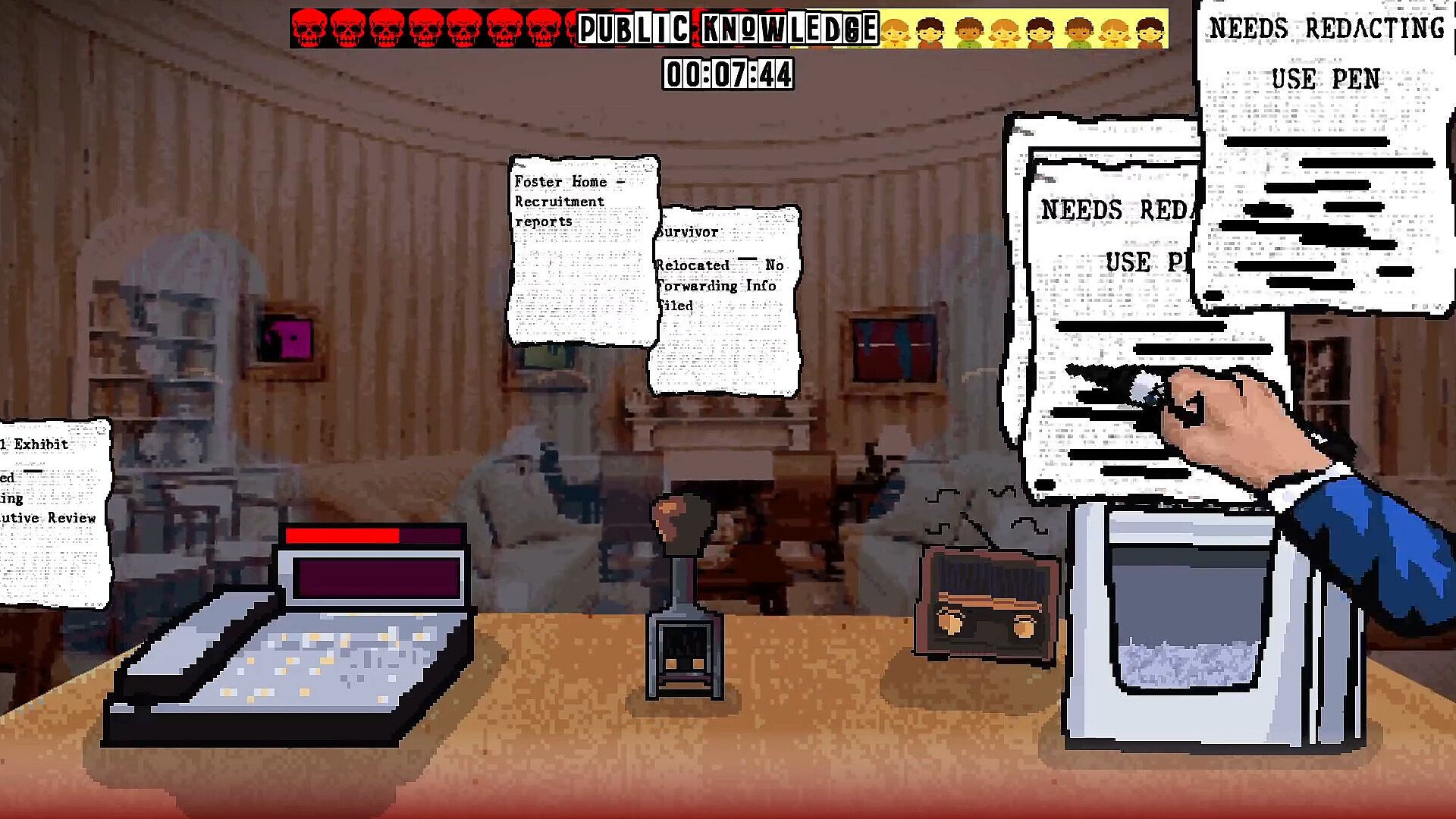 Use your hand to grab and shred, stamp or redact documents before the world sees names, dates, logs, and… other sensitive materials. Multitask your way through a storm of denials, distractions, and redactions in this political reflex game.
