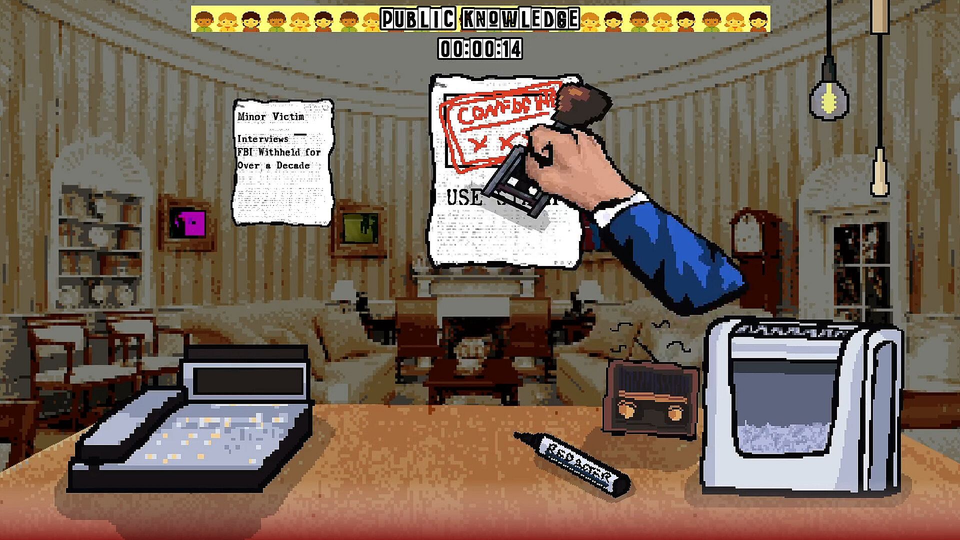 In Release the Files, you’re trapped in a high office with nonexistant classified documents, suspicious task lists, and the rising public awareness. Your job? Keep the whole thing quiet.