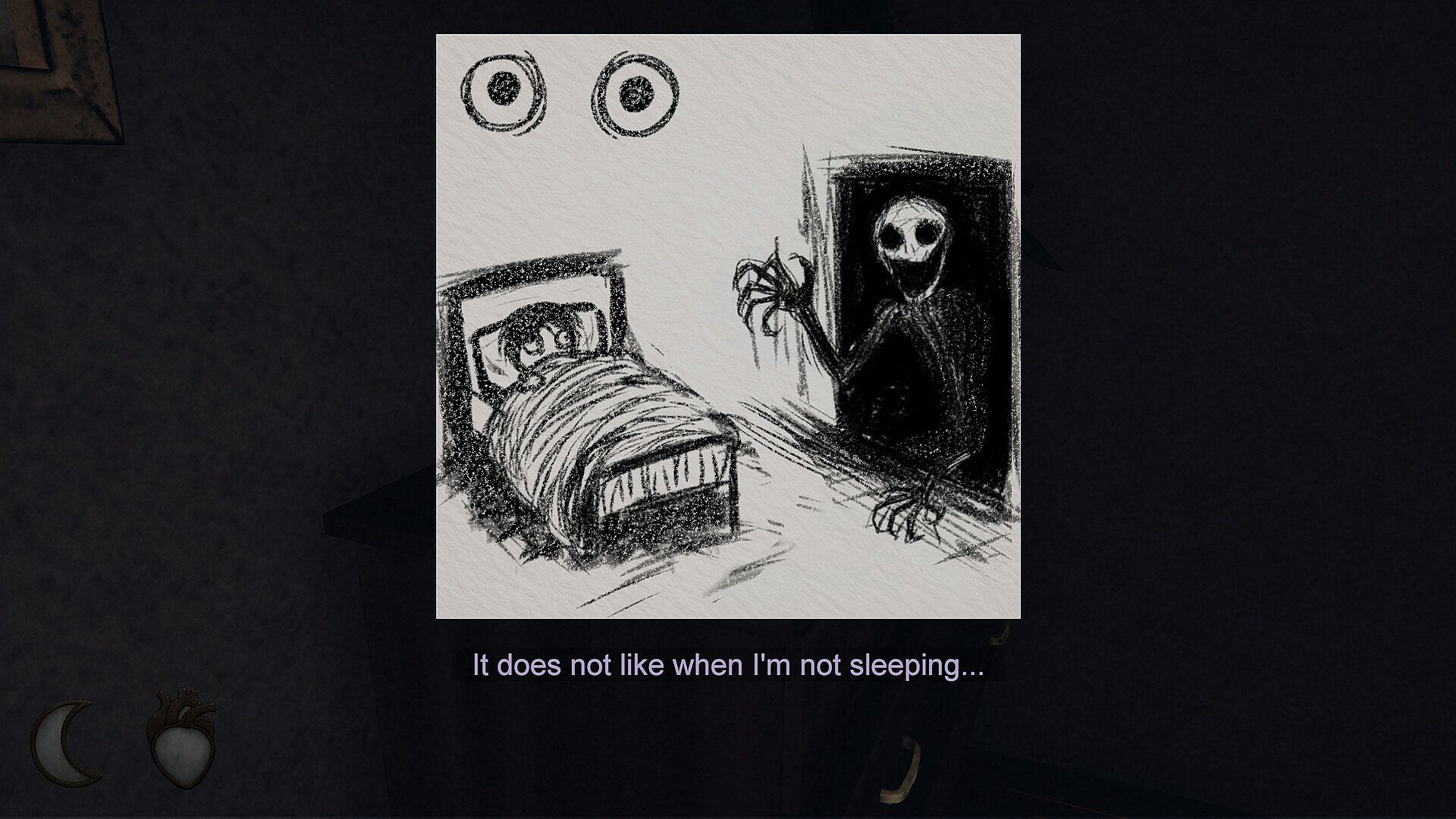 Your only goal is to fall asleep. When morning comes, your parents will return — and the nightmare should end. But every sound or movement builds fear. You can open your eyes to observe the room and calm yourself — but if Namnoi realizes you’re awake, it will react. Sometimes, the safest choice is to keep your eyes shut.