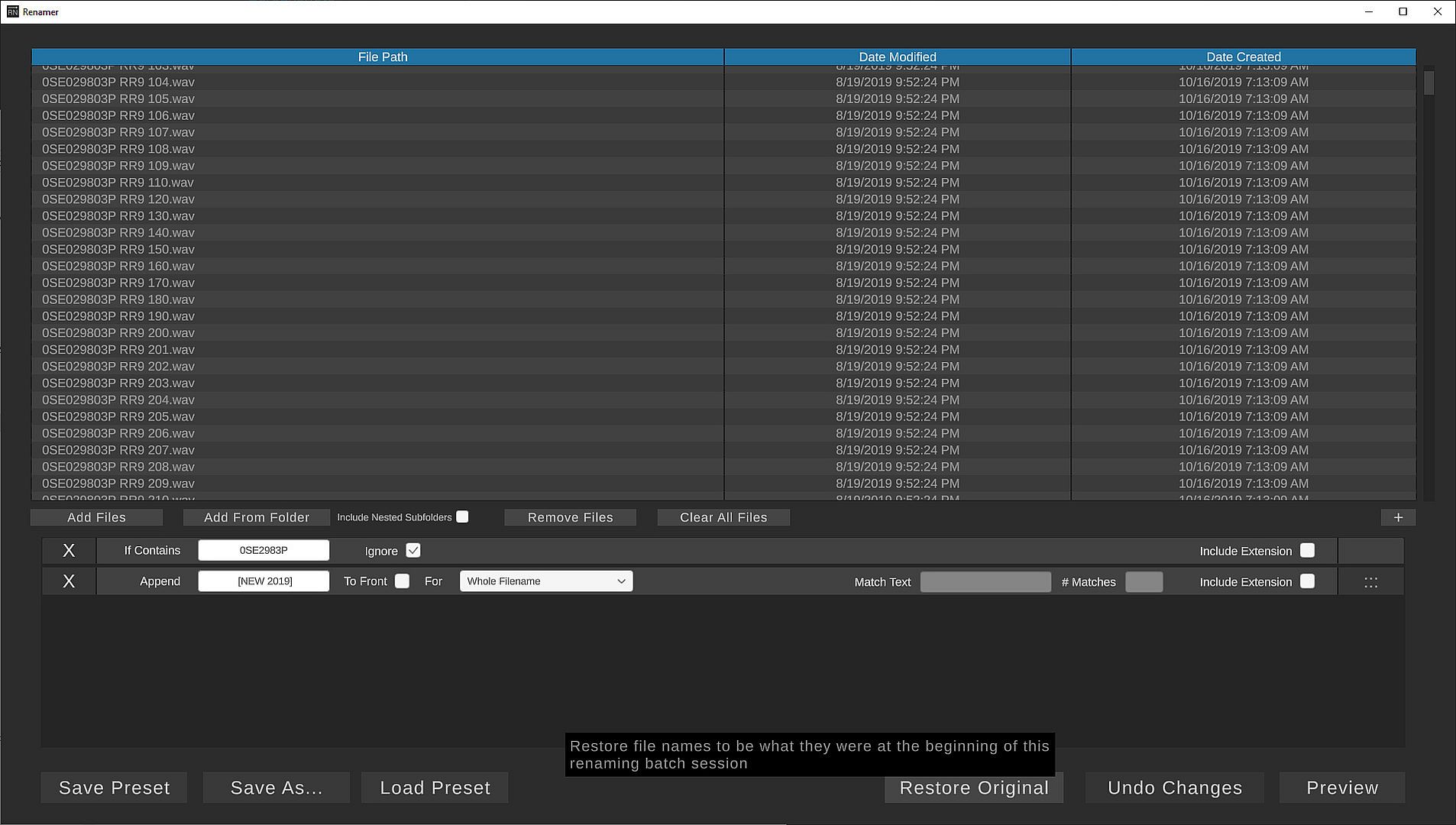 3) Save your renamed files to an output location, or rename them in place
