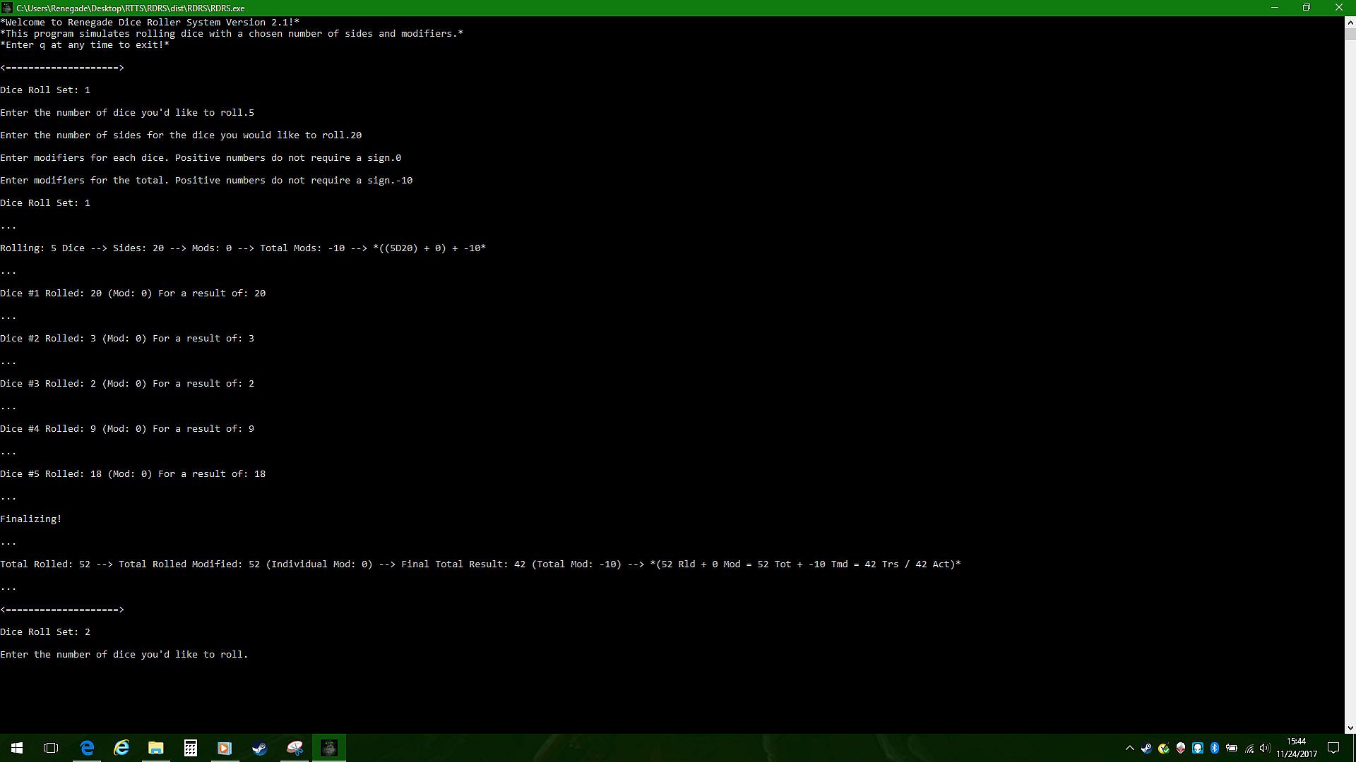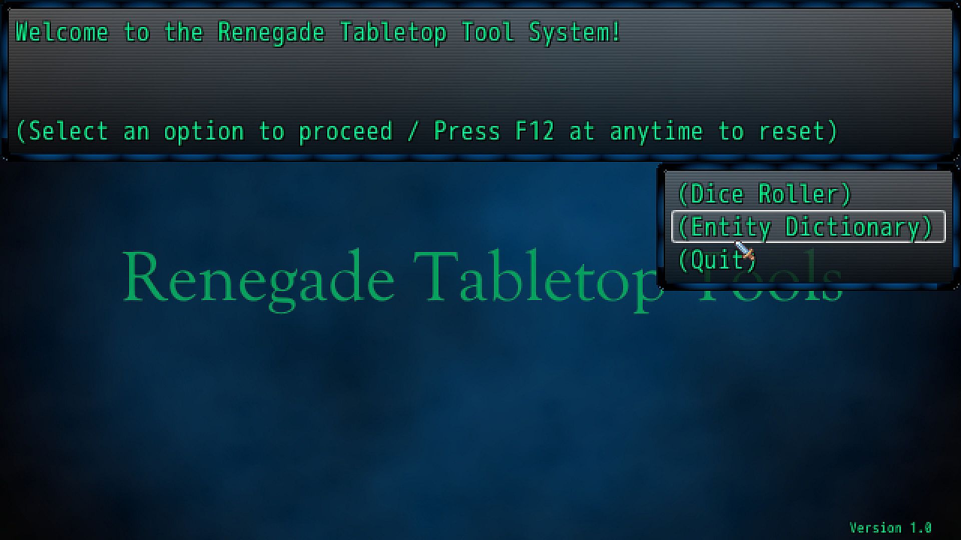 -The Renegade Dice Roller System (RDRS) simply and effectively simulates rolling any number of dice with any number of sides, any modifiers, and will break down the mathematic equation results for you and display them for easy understanding. It also keeps a running total of which dice is being rolled and the grand total of all rolls combined. This can be used as a substitute for the chore of rolling real dice and help speed up combat, determining initiative, large scale battles, and much more! - Renegade Entity Dictionary System: