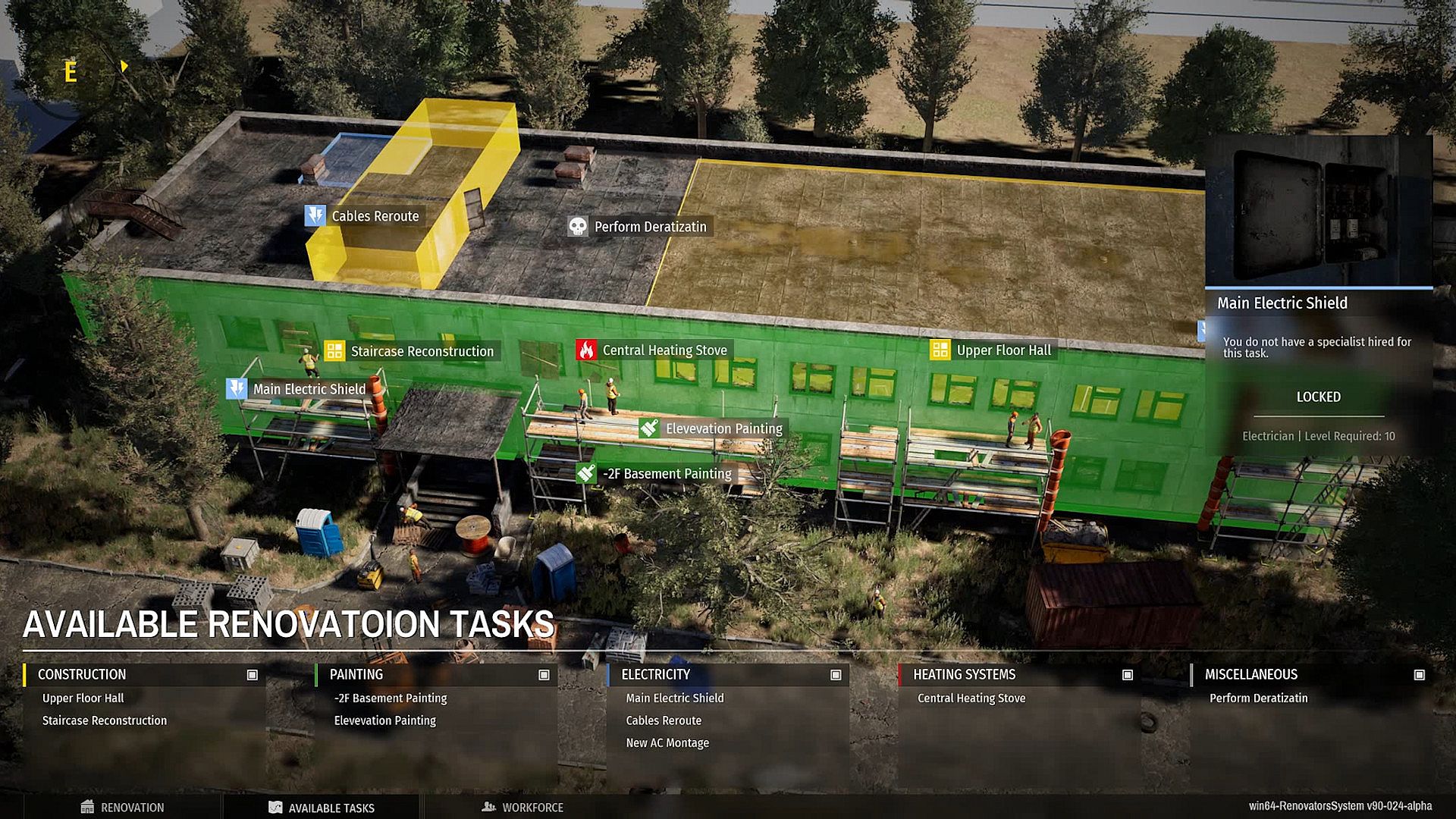 Give out orders to your workers, tell them what to do and where to do it. Mind their stats, since not every employee is suitable for a specific job. As a proper manager you need to be aware of tools required for the task, otherwise, thing might go sideways, literally.