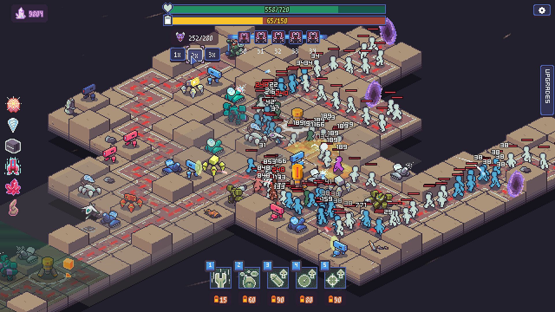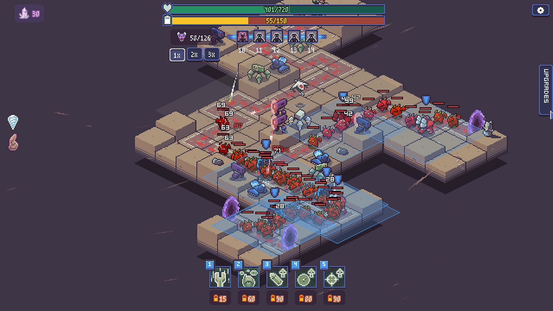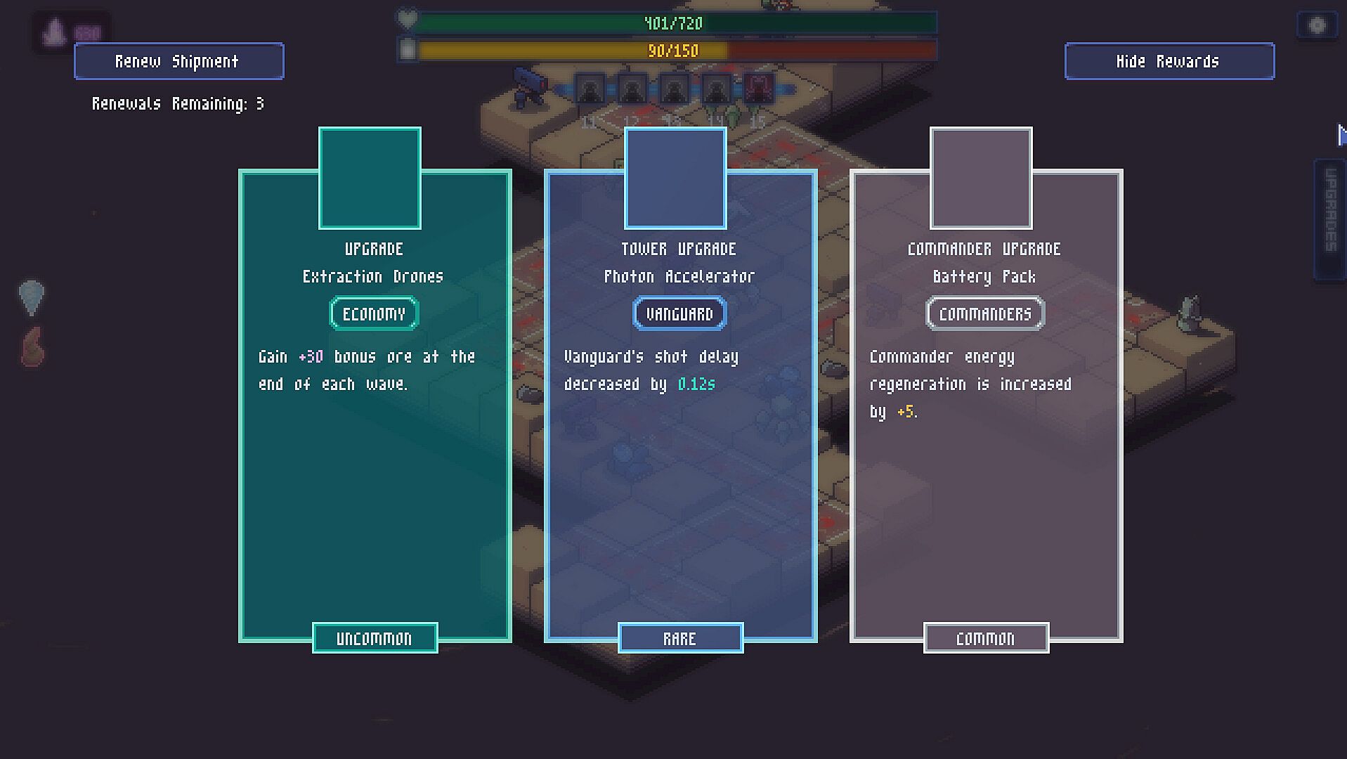 Purchase tower upgrades from a market that strengthen your towers and can even grant new effects. Discover different combinations and strategies every expedition!