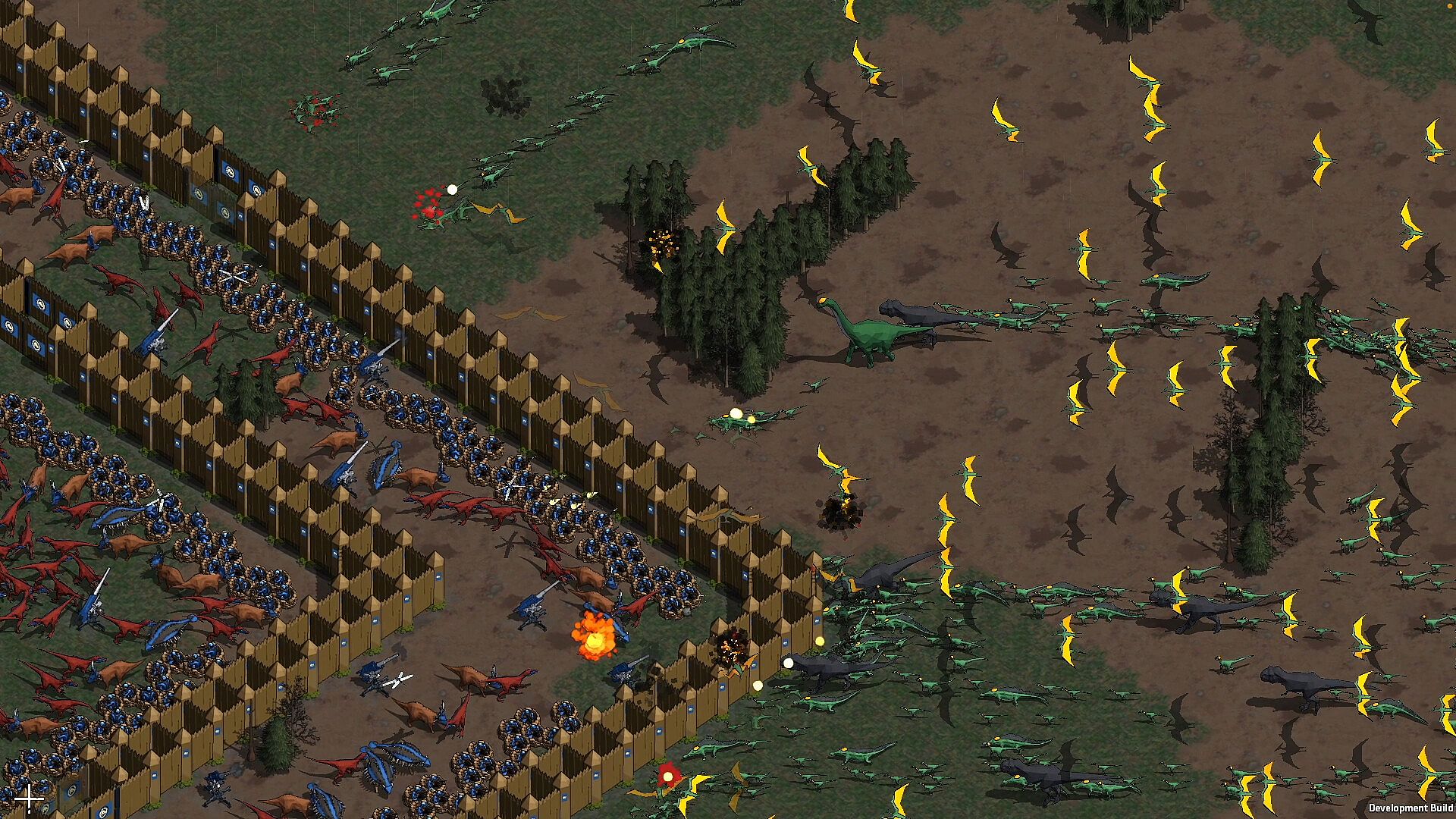 3 factions, each with unique units, perks, and heroes. Every faction emphasizes a different play style, from resource management and mobility to technology, dinosaur taming, or raw combat power. Choose the one that fits your strategy and conquer accordingly.