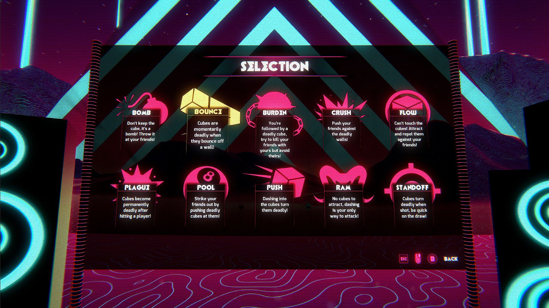REPULSE: Galactic Rivals is a local competitive couchgame, up to 4 players and set in a retrofuturistic universe.Players have the ability to attract and repulse cubes spread around the arena at high speed. Discover a dozen of game modes revolving around this repulsion mechanic, while being powered by an addictive and punchy synthwave soundtrack.