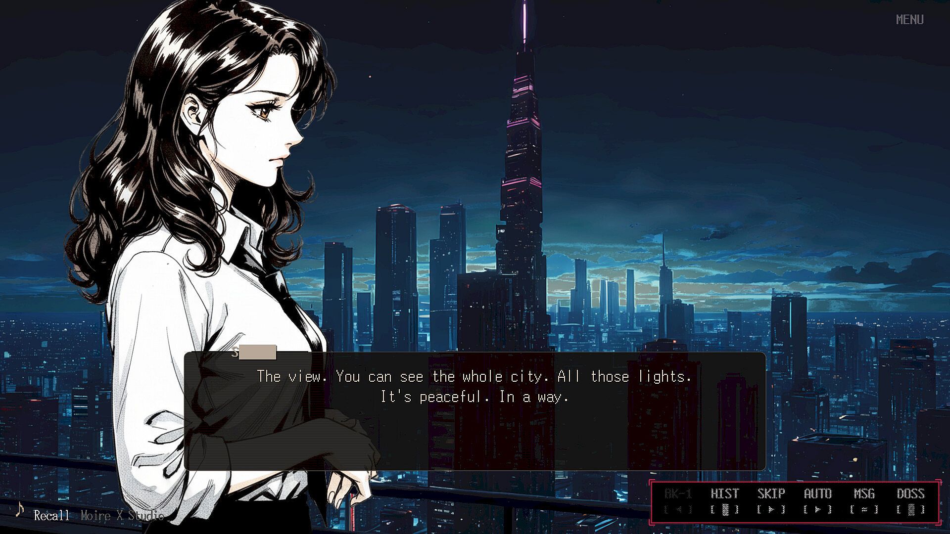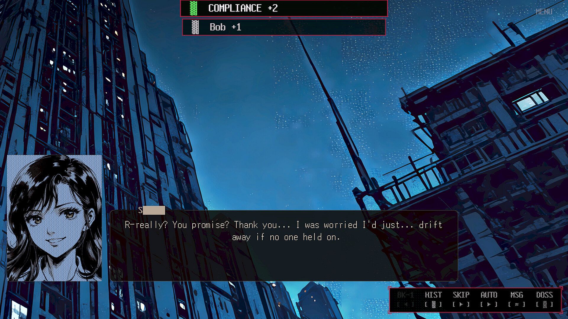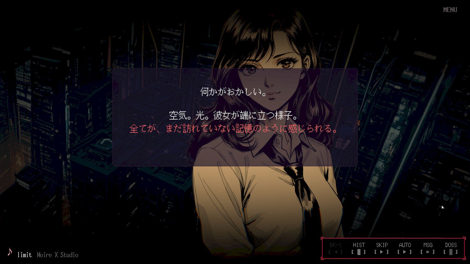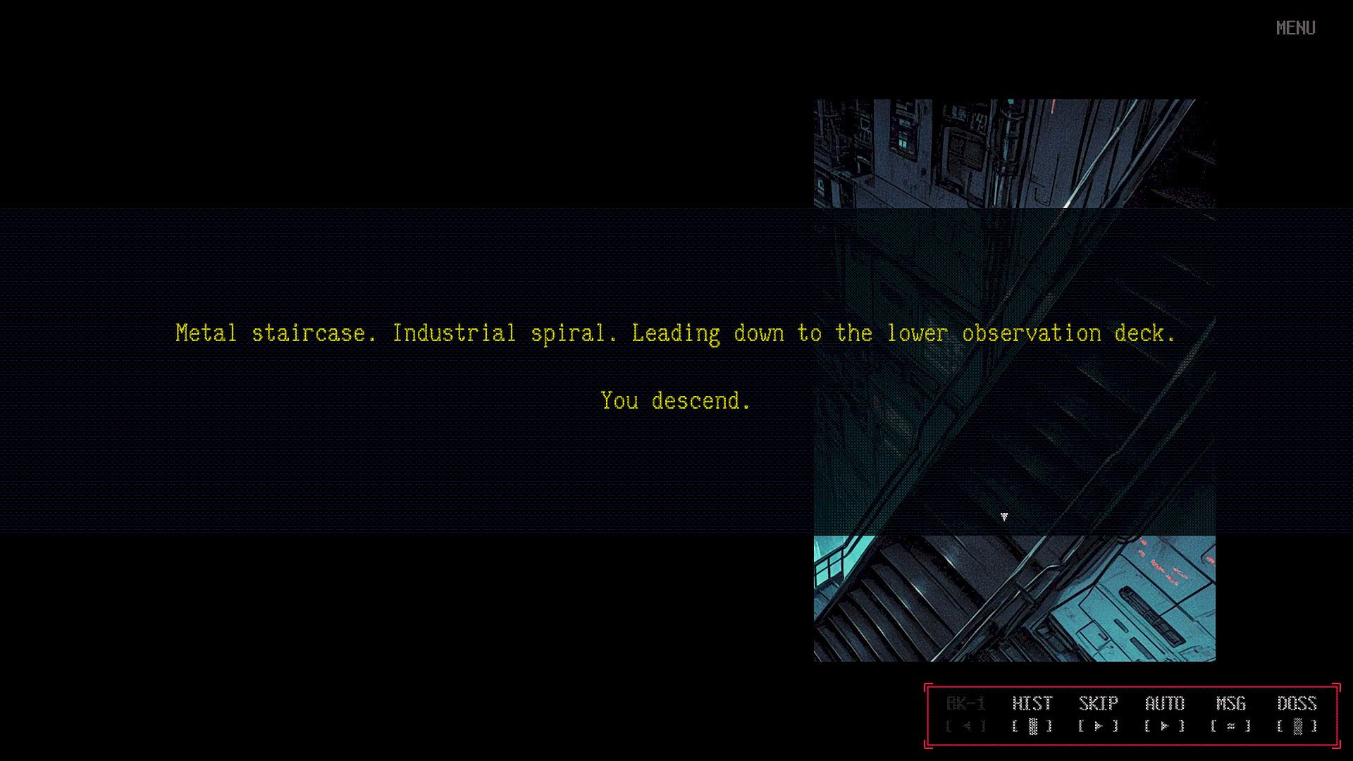 Click through dialogue and internal monologue, or hold to advance automatically