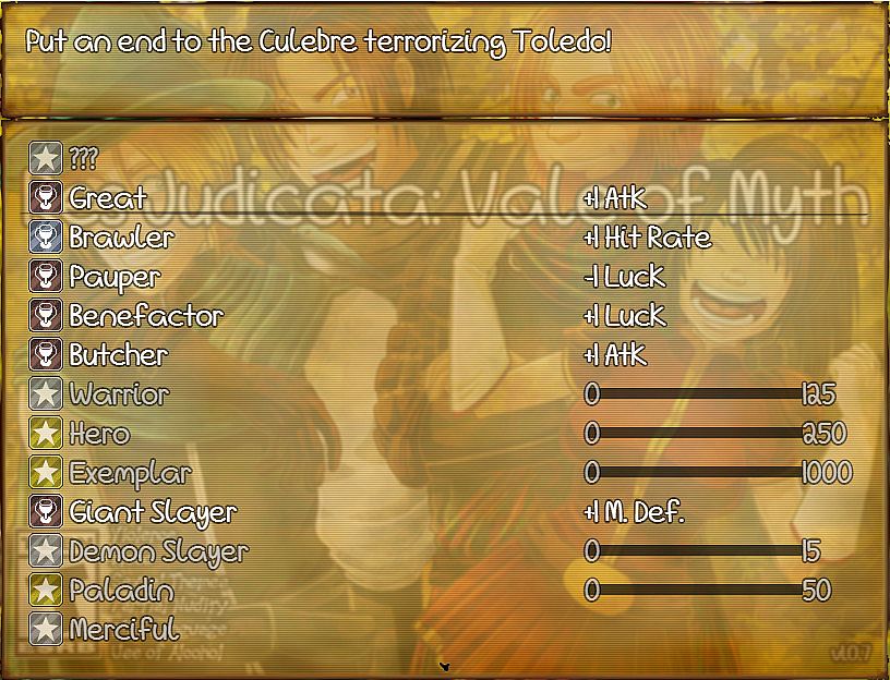 Res Judicata, or RJ for short, is a 2D comical low-fantasy JRPG, set in an alternate-history Earth in 1315 AD, shortly after the Pope dissolves the Templar Order. Blending the best aspects of western and eastern RPGs and boasting an average playtime of 20 - 30 hours; RJ highlights mythologies, locations, and cultures around the globe! Those tired of playing pest-control will be thrilled to hear there are no rats, bats, or orcs here; Vale of Myth's bestiary is a collection of hand-picked mythological creatures from many cultures. New to JRPGs? No problem! RJ encourages new players with a number of accessibility, difficulty, help, and save options. Take on the role of Garbhan, Scottish Highlander, as he battles (and drinks) his way across the old world. During his journey, Garbhan will join forces with three dysfunctional companions, including Francis, a bard notorious for his utter lack of singing talent, and Daron, a chivalrous ex-knight notorious for his skirt-chasing. Find a trove of hidden treasures and secrets and unravel the mystery of powers interested in these odd heroes, why spirit travel with them, and why ancient evils stir once more!