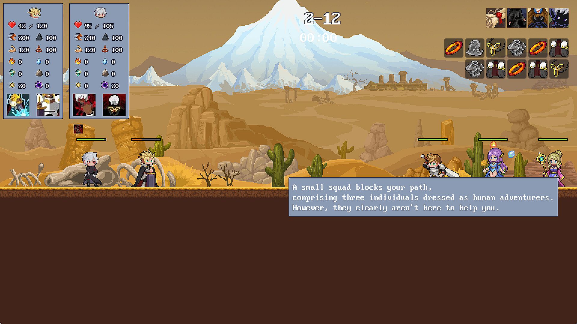 Each of the 5 available characters has 2 initial skills and 6 enhancement skills; choose suitable ones to further boost your power.