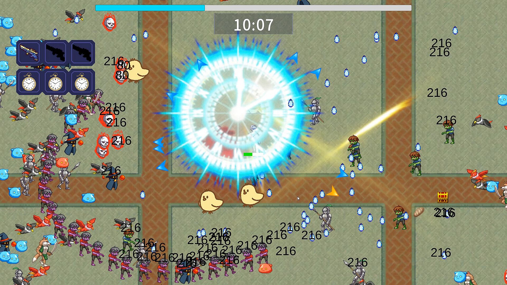 Defeat enemies that keep coming at you, find friends and treasure chests, collect crystals, and challenge bosses over and over again.