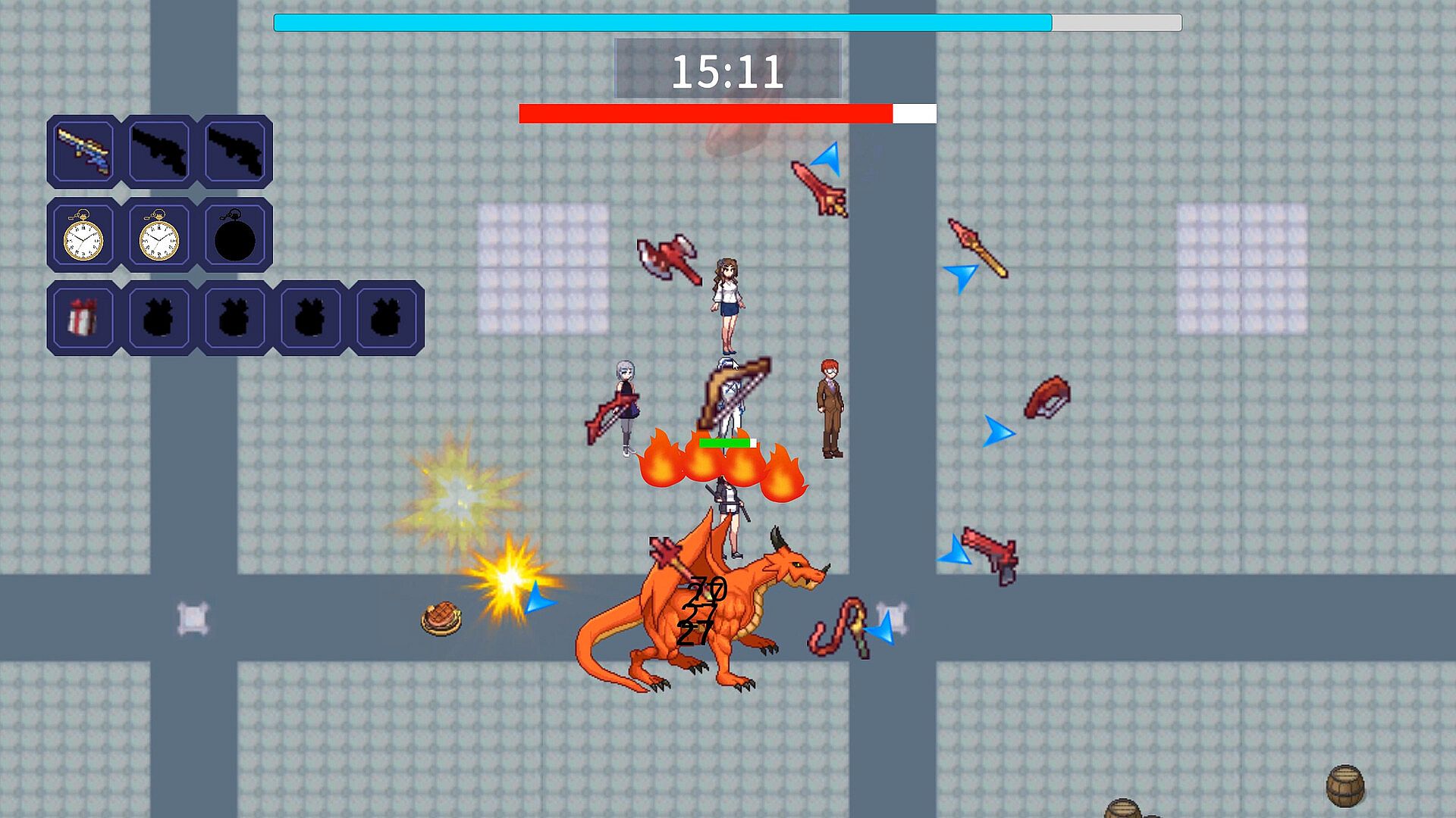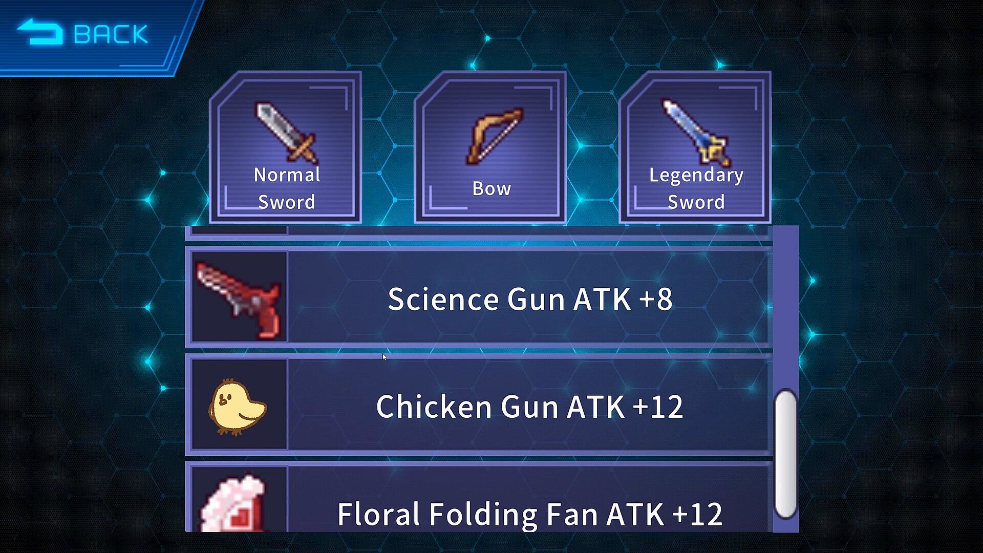 The main character can set up to three weapons, each with unique attacks.
