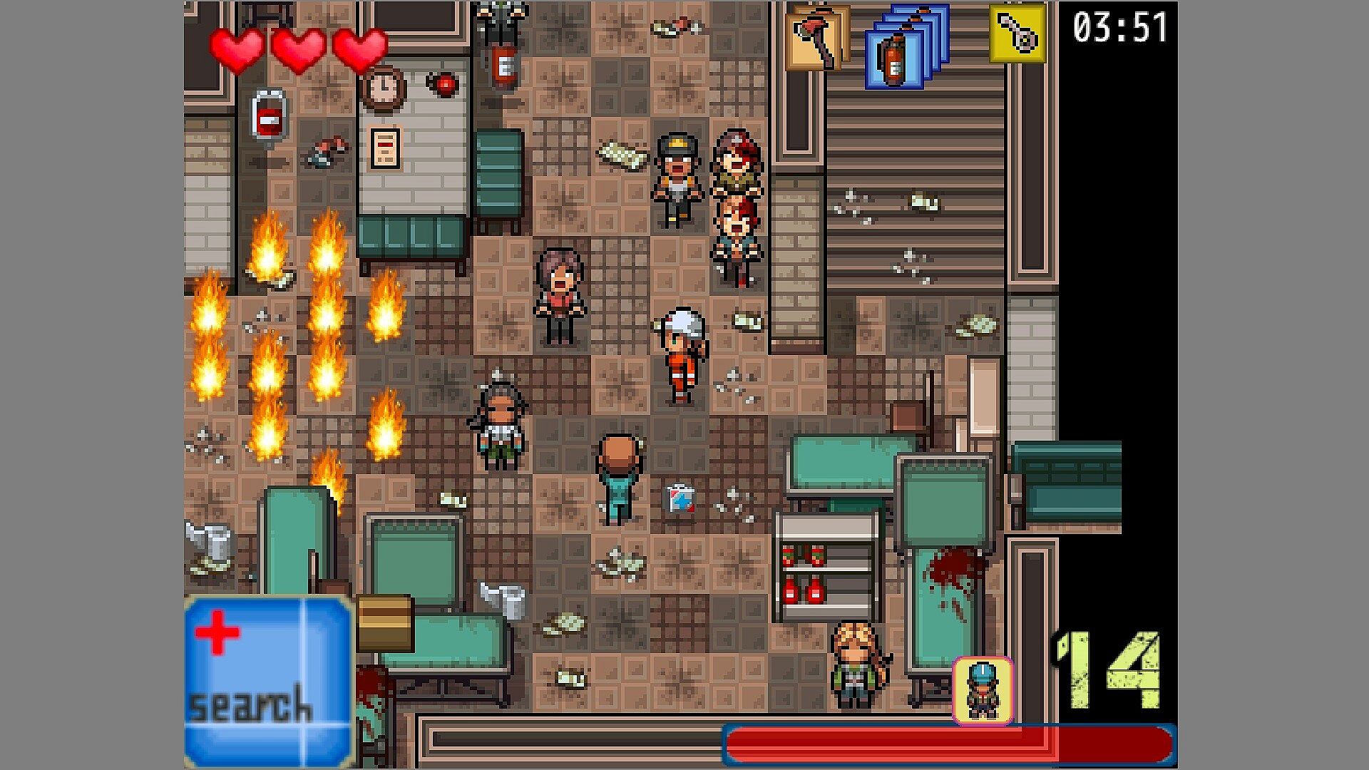 The protagonist can use a feature called "Triage Search" to check the status of infected people and locate those hiding. Making effective use of "Triage Search" will allow for more efficient rescue operations.