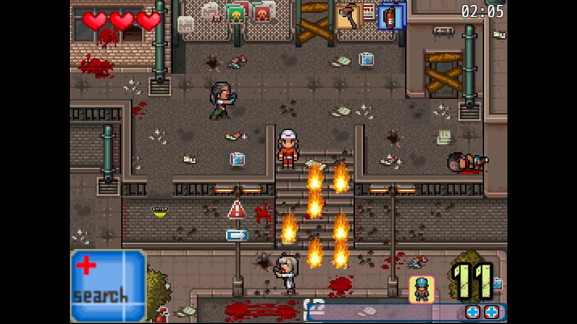 Collect medical treatments scattered throughout the city and rescue those infected within the time limit.