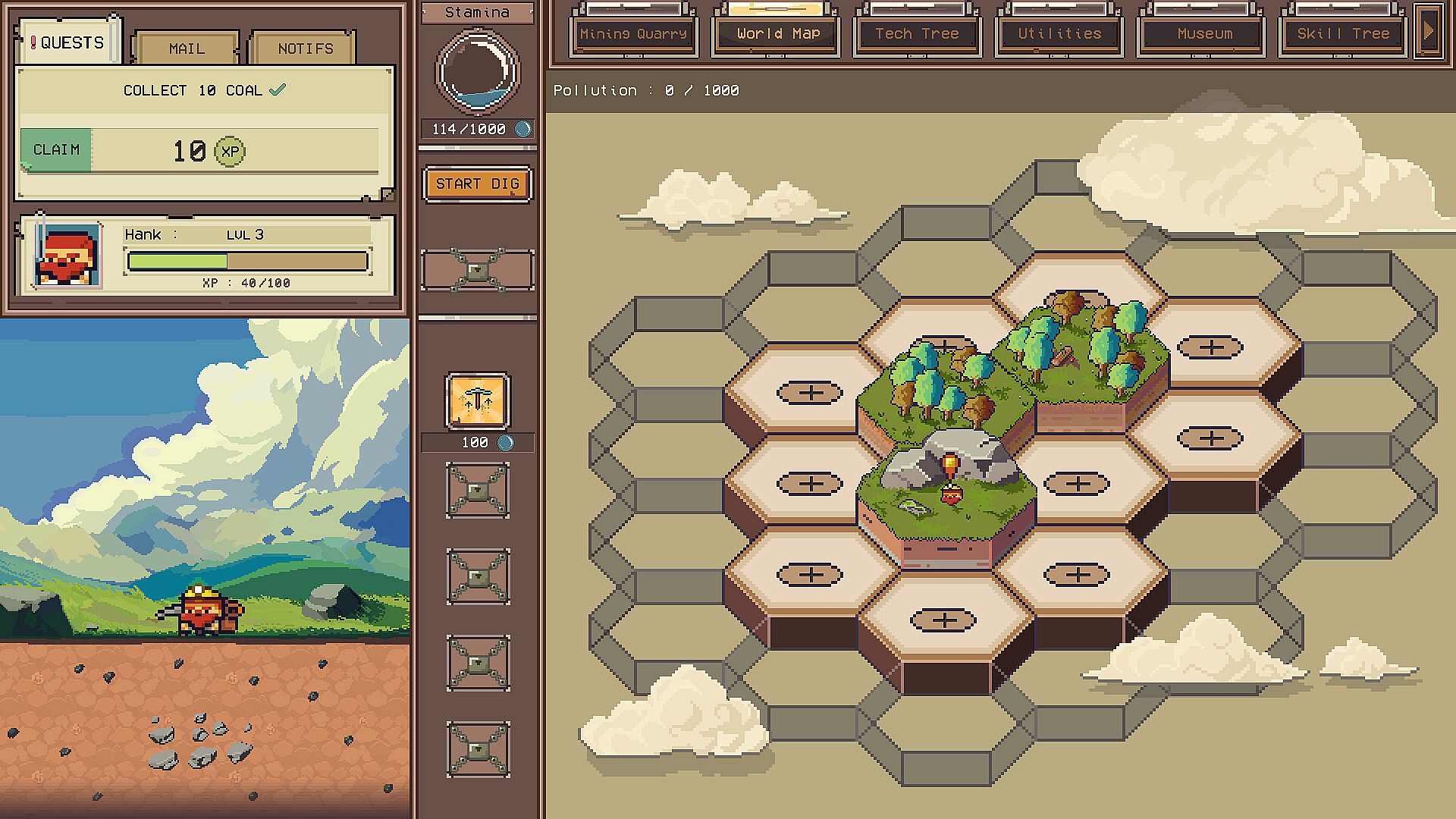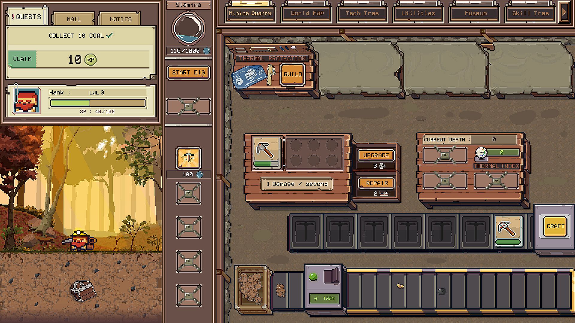 Get ready to dig deep into a world full of valuable resources and ancient treasures! In this thrilling mining adventure, you'll collect resources, craft new tools, and improve them as you explore diverse biomes.