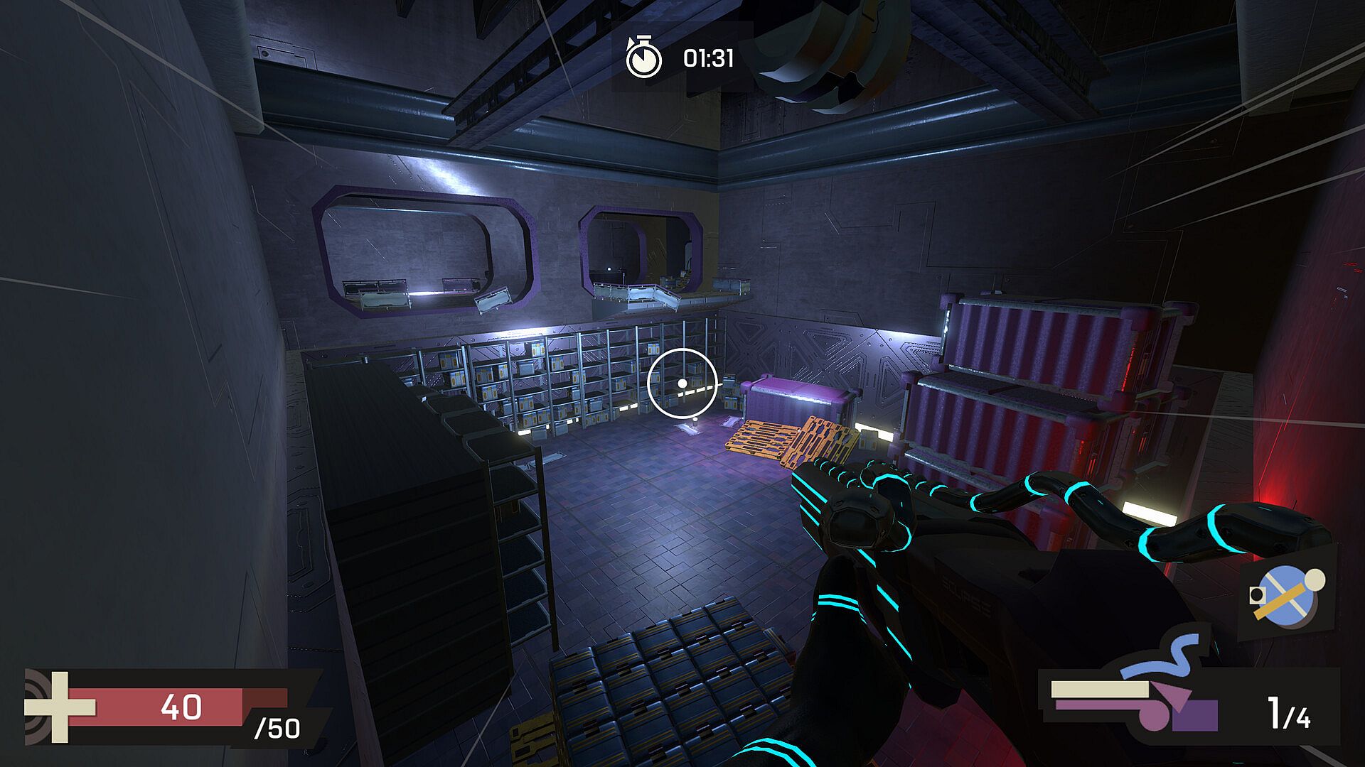 Your gun isn’t just for shooting, it’s your key to mobility. The gun’s powerful recoil can launch you to hard-to-reach platforms or propel you away from danger. Master this unique mechanic to gain the upper hand and navigate the station in ways no normal jump could ever achieve.