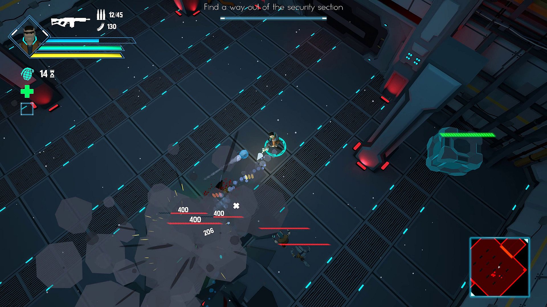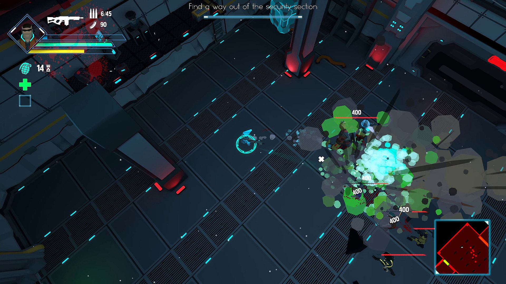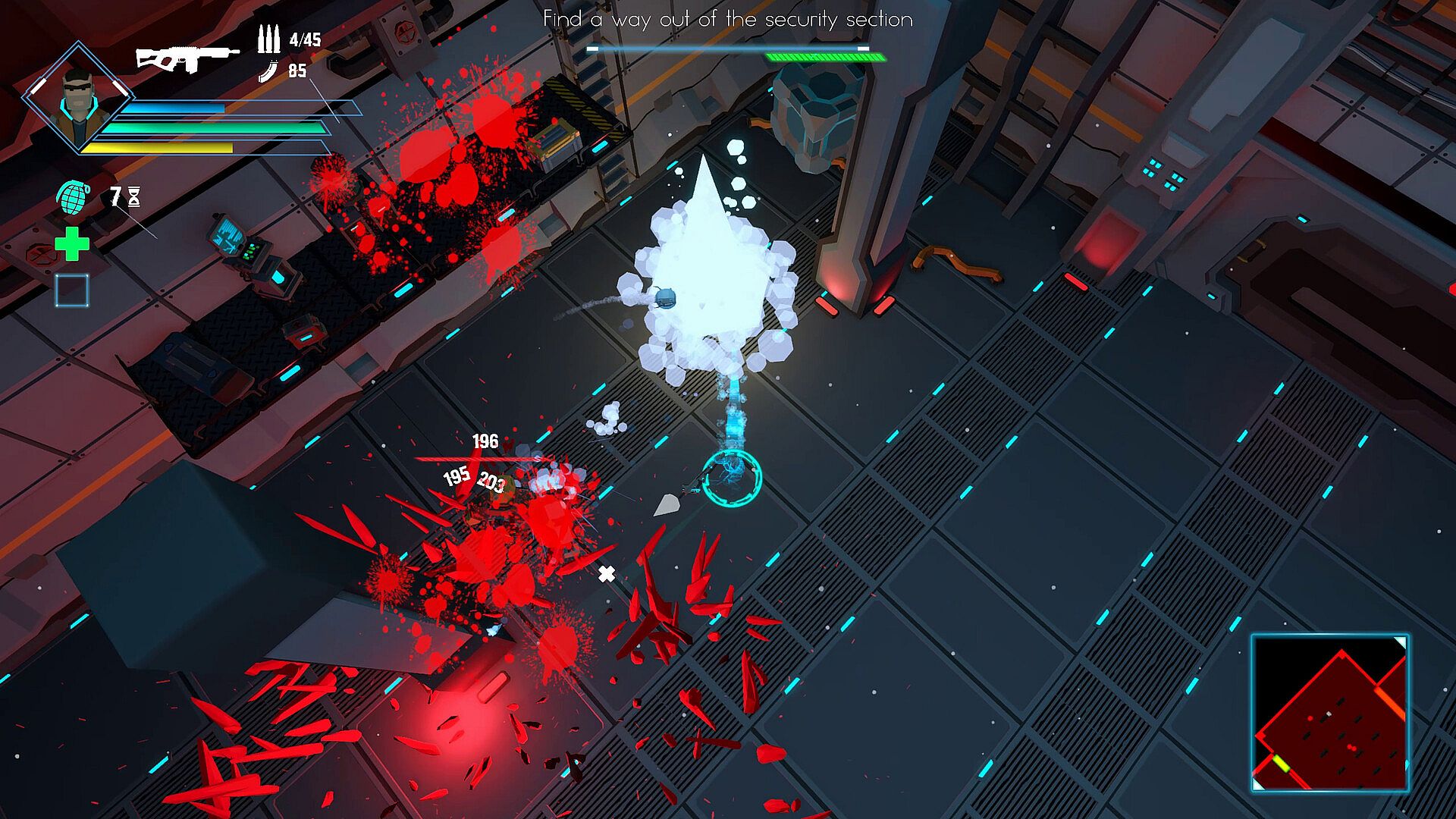 • Cyberpunk-inspired twin-stick top-down shooter.