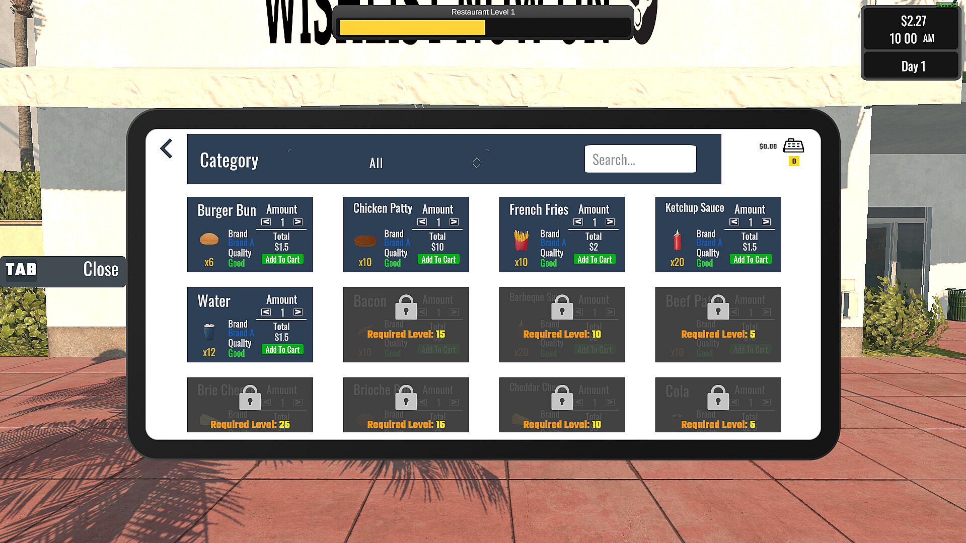 Your starting capital allows for a small fast-food place at first. Compose your first diner menu snacks and progress towards fancier food in no time! You choose the dishes served at your restaurant. Can you find the best cuisine?