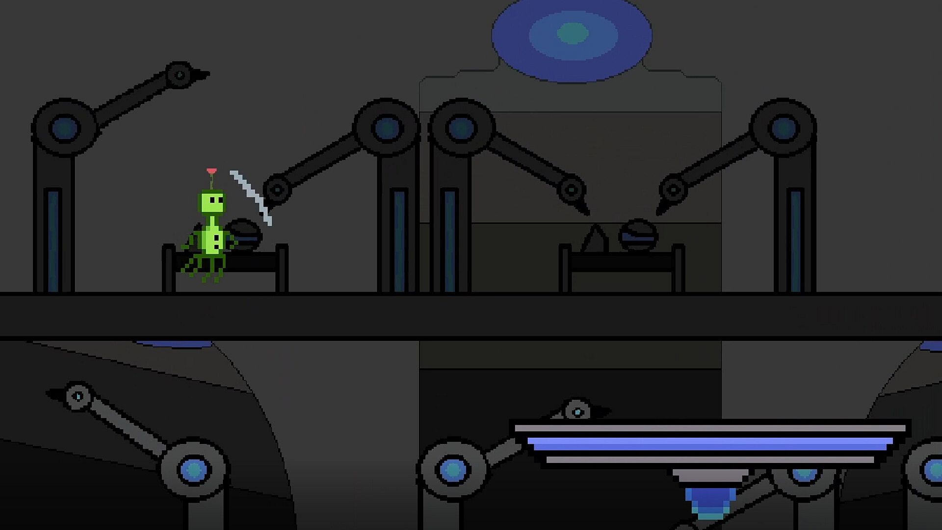 Explore hand-crafted pixel environments, restore broken systems, and outsmart the robots that see you as a threat.
