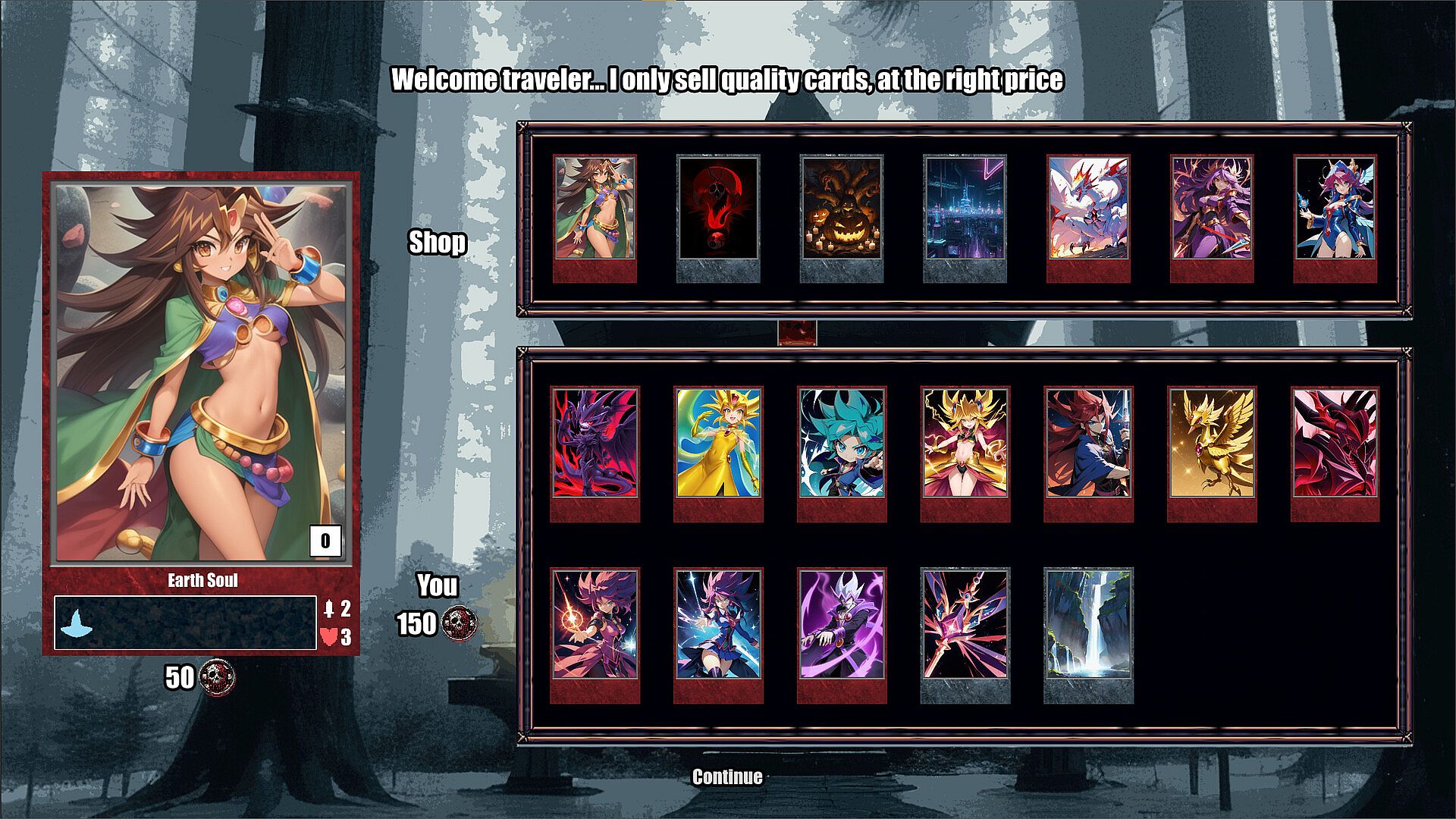 Build and refine your deck by exploring the map, finding new cards, and interacting with enigmatic characters.