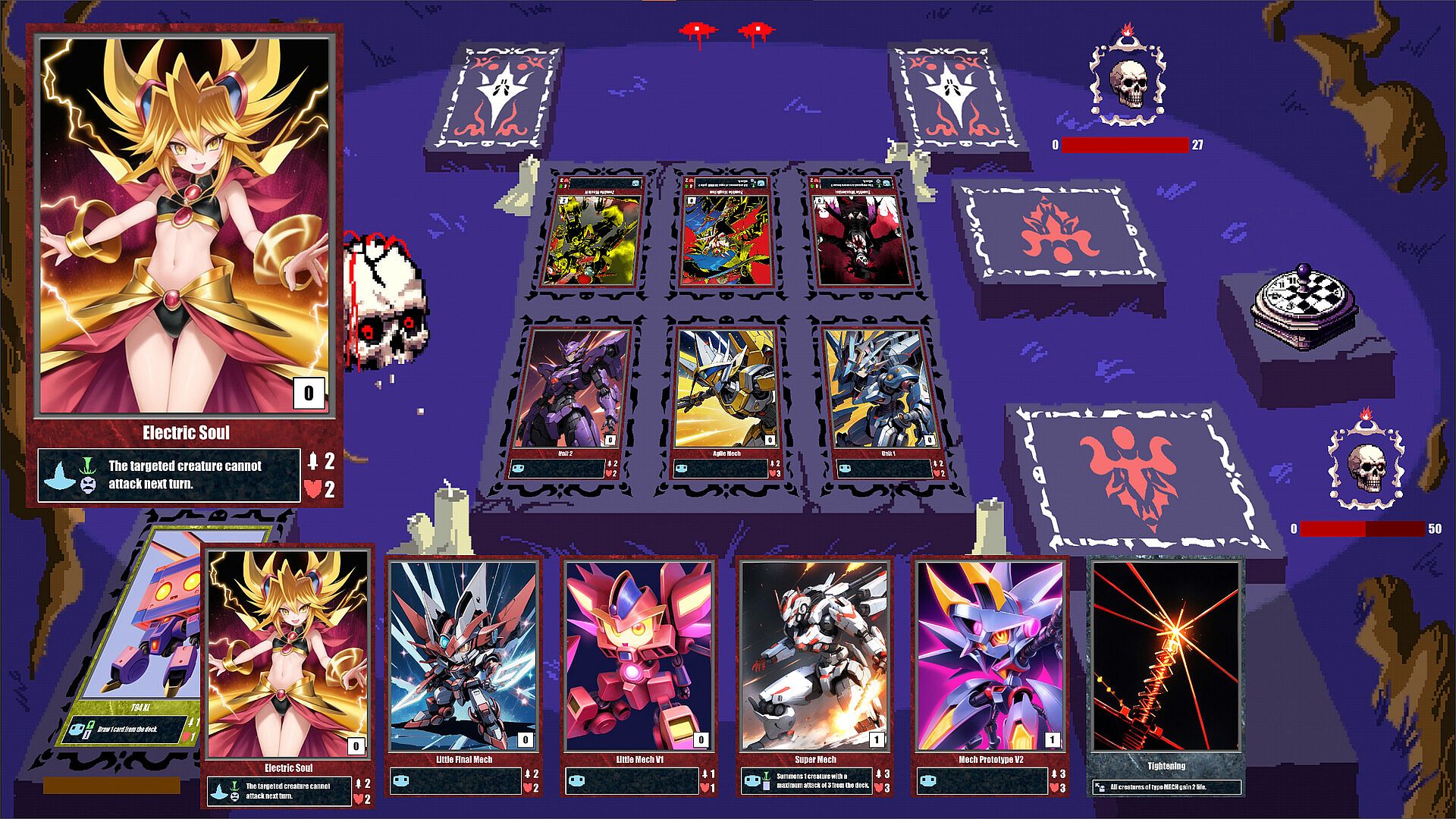 Resurrect is a horror roguelite card game where you engage in battles by deploying creatures, using instant cards, and executing powerful combos. Choose from various decks, each offering distinct playstyles including Mech, Demon, Mage, and Dragon.