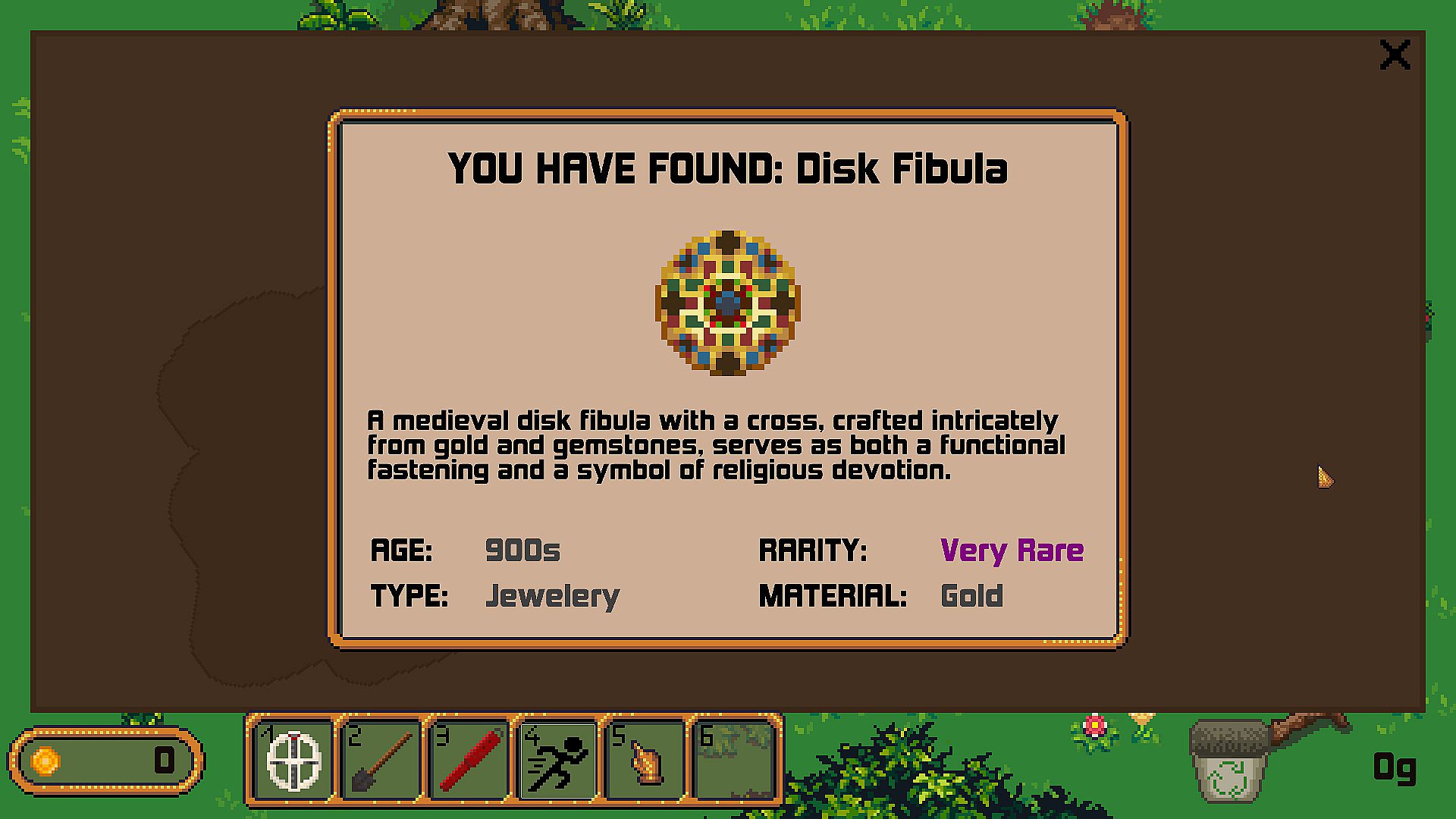 In Retro Relics, you follow in the footsteps of your late Grandpa, a passionate metal detectorist. Explore nature and search for various relics with your metal detector. Roam freely with no time limits - detect, dig, help others find their lost belongings, and complete your coin and relics collection!