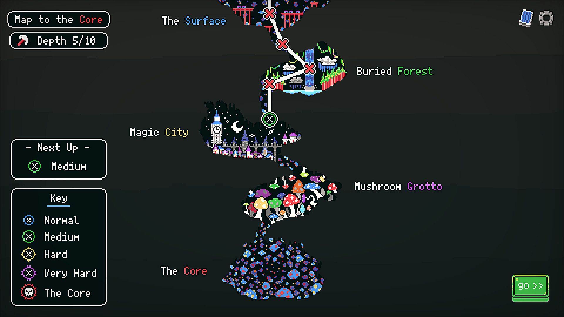 Roguelike deckbuilding: Delve into the mines, play cards to mine resources, and escape with your life - then use those resources to buy new cards, upgrade your deck, and power up!
