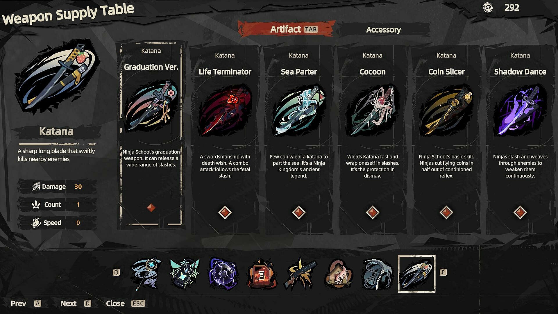 12 basic weapons that can evolve into 72 different artifacts