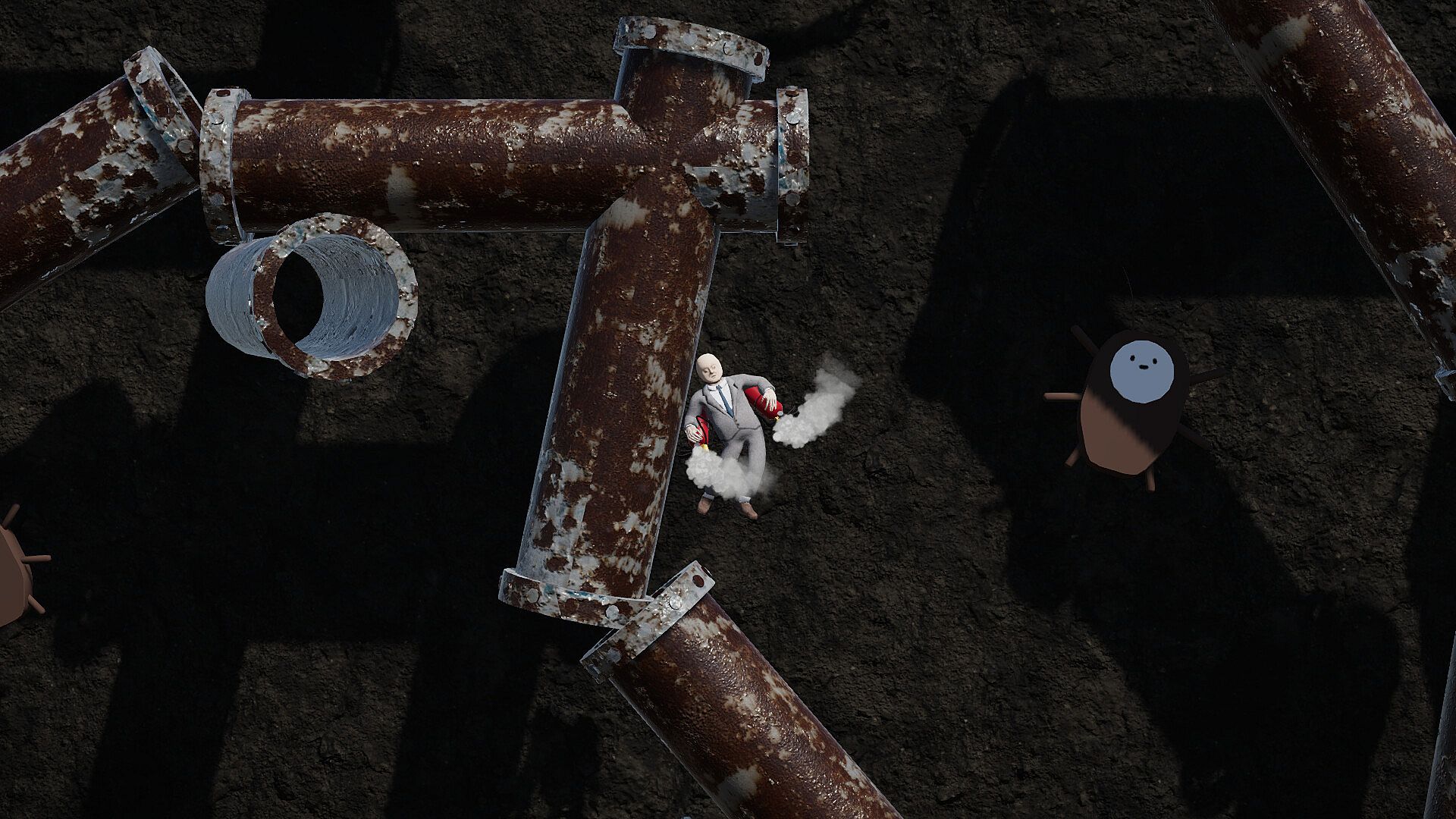 This is a physics-based solo action game where you use a fire extinguisher as a propulsion device to launch yourself across the map.