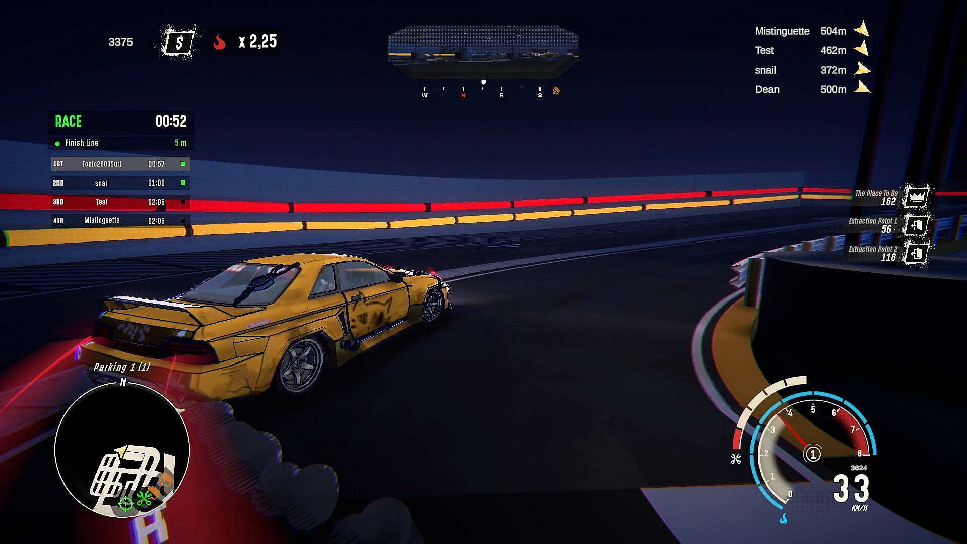 Risk vs. Reward. As you win races, your rewards grow exponentially. But remember that each victory also raises your bounty, making you a bigger target for cops. Weigh the risk of being hunted against the temptation for greater rewards. When you’re ready to end your winning streak, cash out by extracting from the city to secure your earnings.