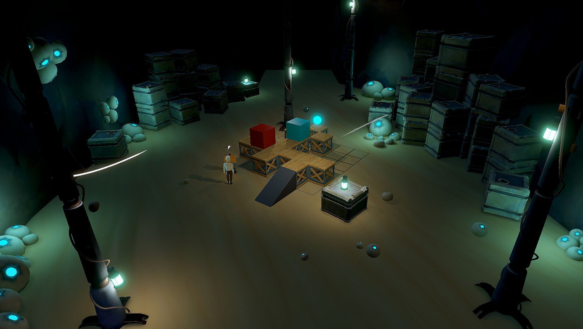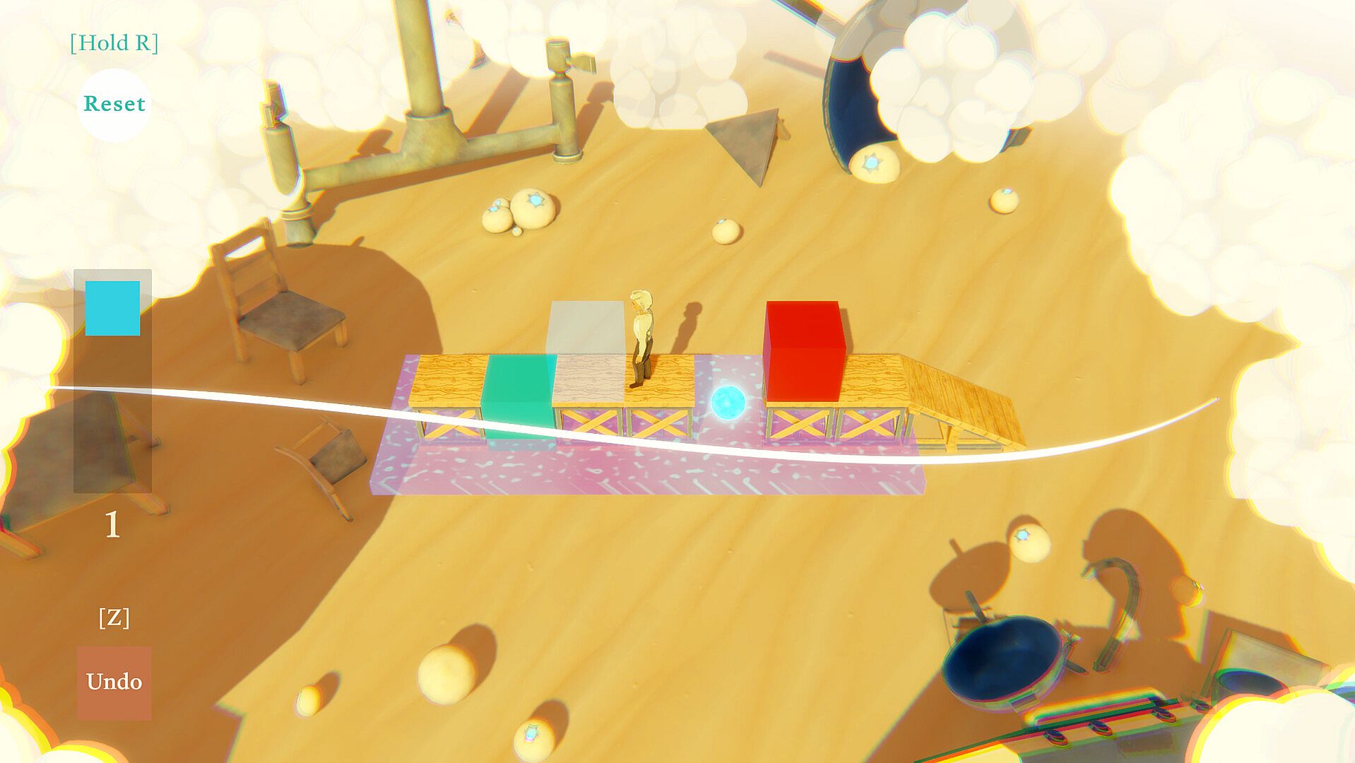 Navigate and solve 50+ puzzles by pushing blocks, manipulating time and navigating small grid-based spaces in dreamy desert environments based on various locations from Reverie’s life.