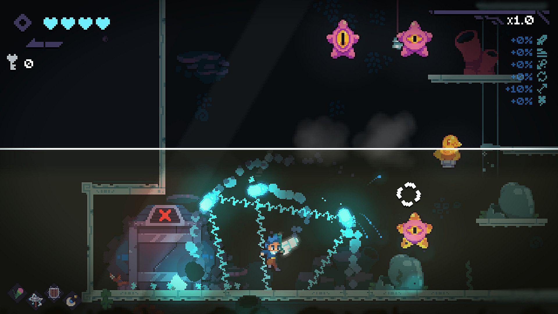 Twin stick shooting, dashing and wall sliding are just the beginning - find power-ups and items on each run and upgrade your arsenal